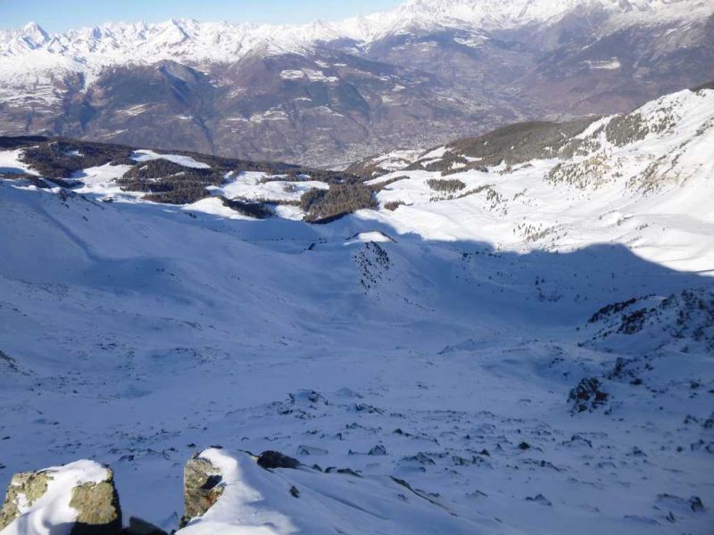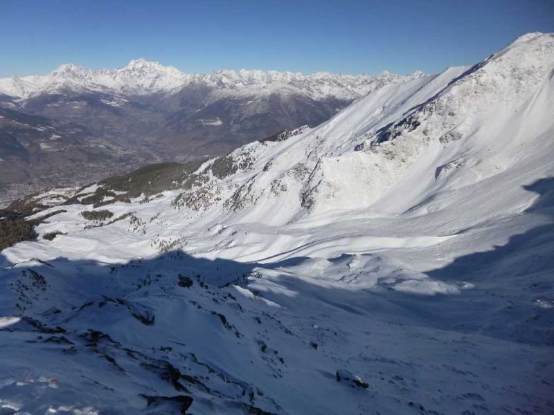 Pila, plan de l'Eyvie, pointe de Monpers par son versant NE. Descente par son versant nord.