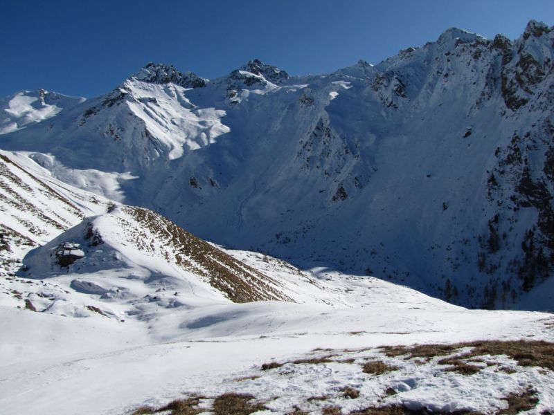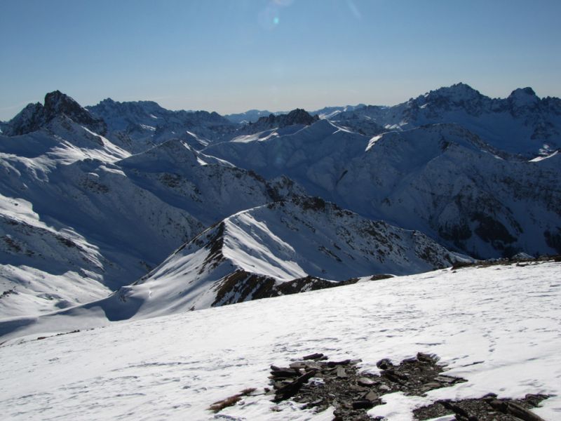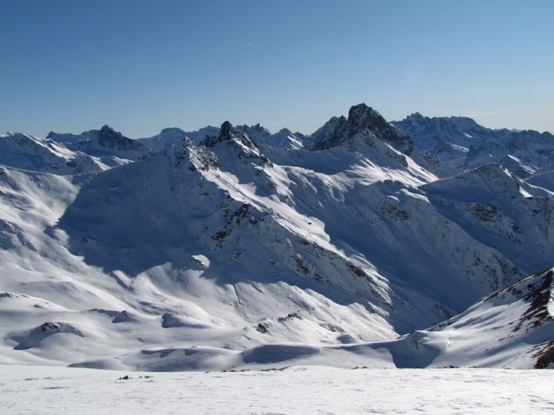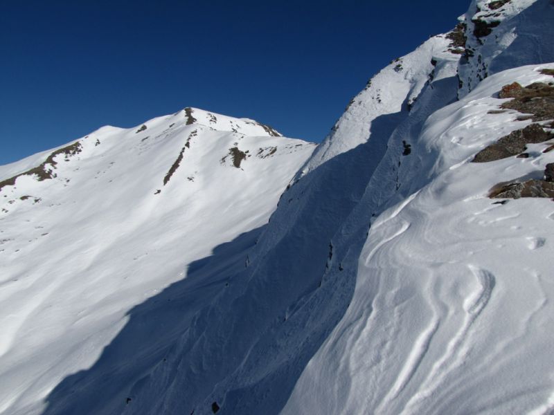 Bien au chaud à la maison je visais la poudre du nord de Clausis (H6.1). Mais...départ glacé à l'ombre. Aprés 30 minutes bien fraiches je me dis que je n'ai pas envie de passer la journée au frigo alors qu'en face la lumière et la chaleur sont une invite irrésistible. Va donc pour les Avers en allant au plus vite au soleil de l'arête ouest, délicate, mais bien esthétique. Beau, chaud avec un beau voyage de retour, je n'en demandais pas plus !