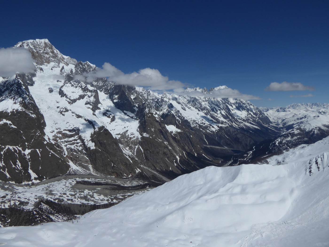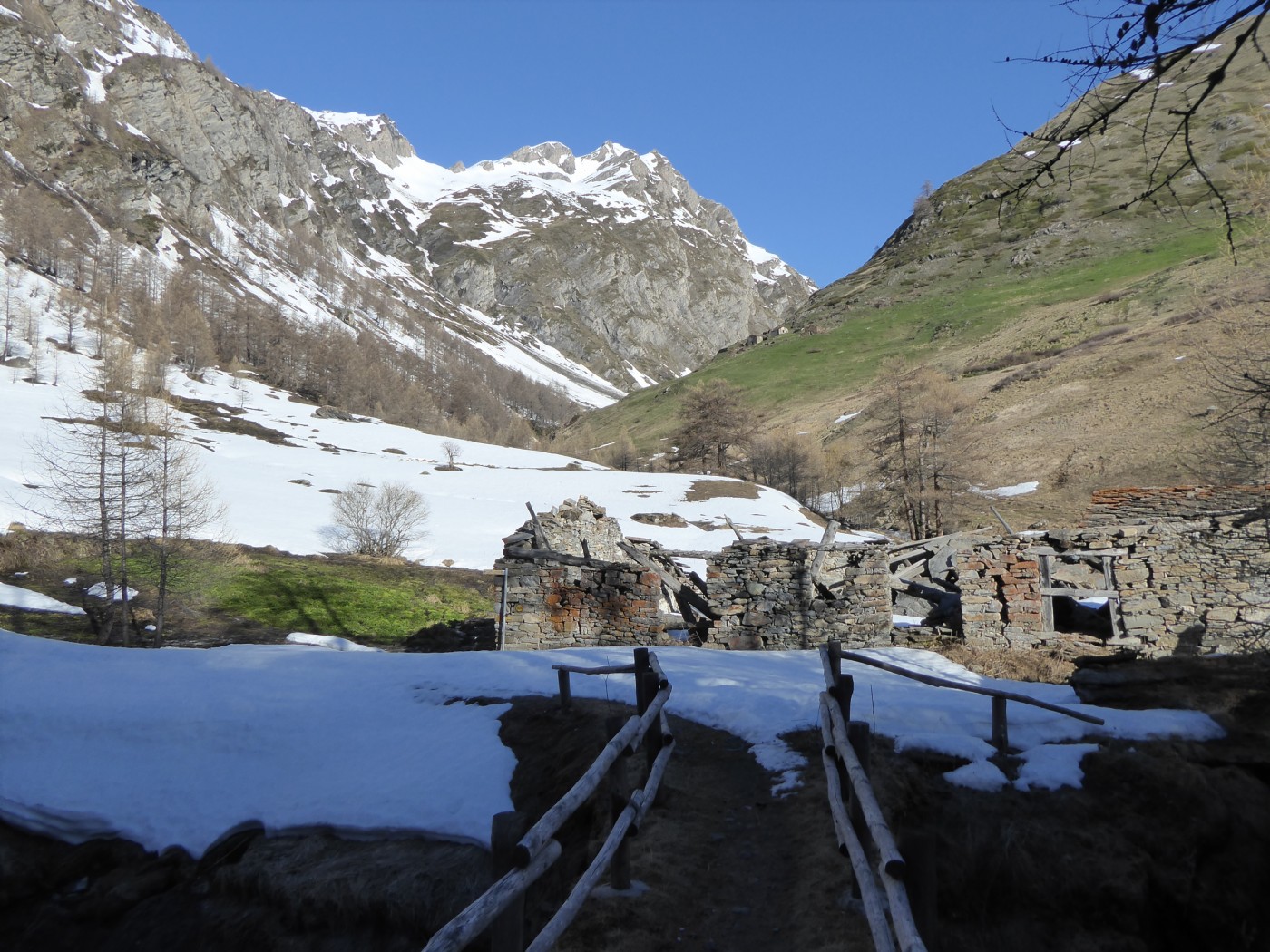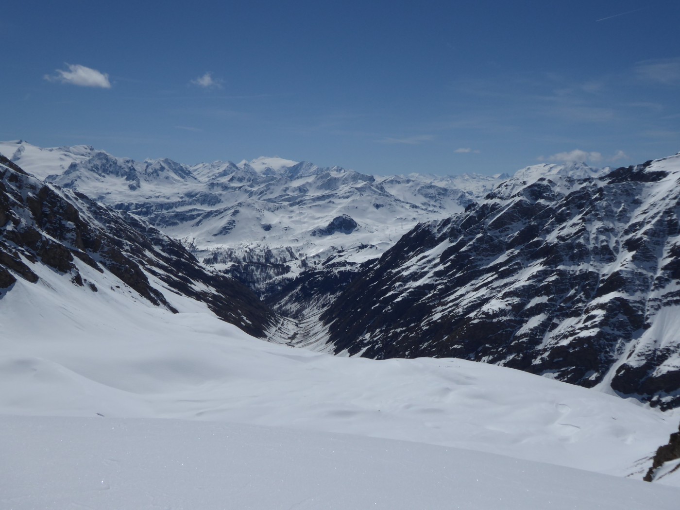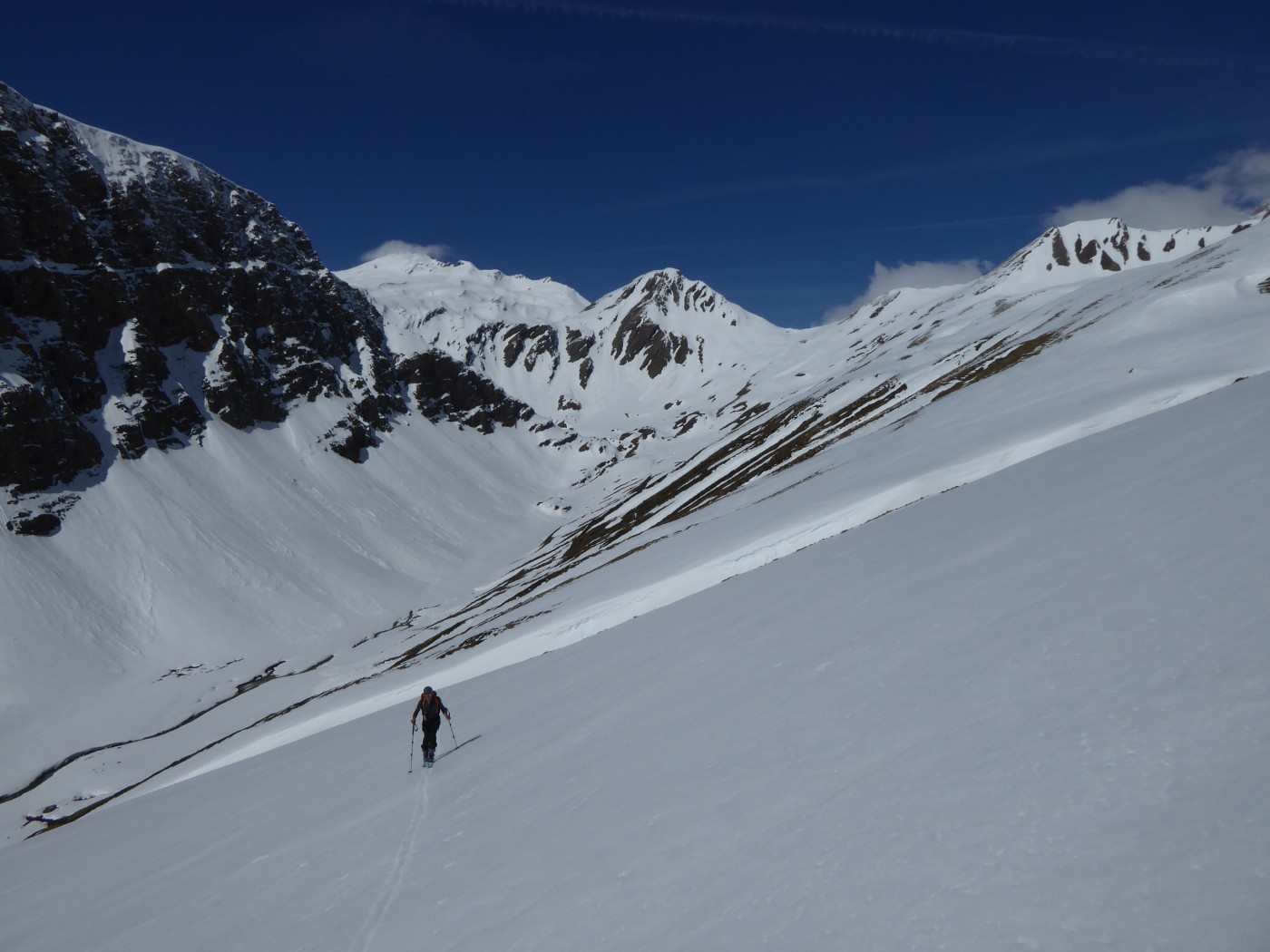 Neige transformée avec un bon regel à tous les étages sur cette itinéraire tourné vers le sud. Les pentes E et O qui dominent le bas du vallon des Chavannes ont bien purgé laissant dans le fond du vallon des dépôts souvent terreux.