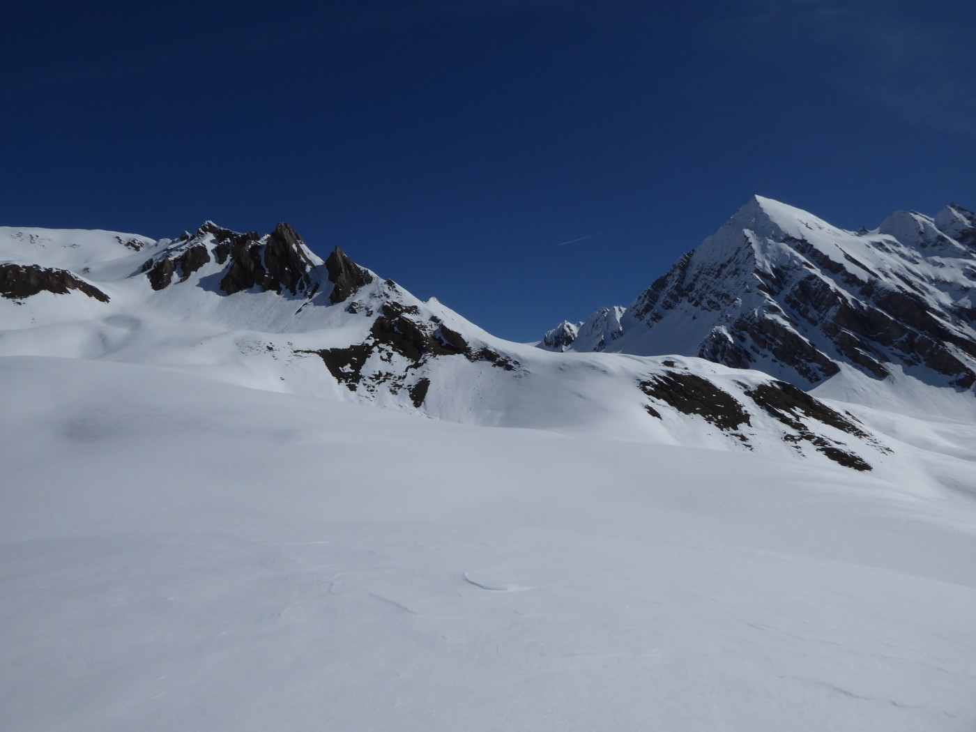 Beau sommet panoramique et peu fréquenté. C'est le plus "rapidement" accessible du fond du vallon des Chavannes. L'accès au vallon depuis Arpettaz par la rive gauche est sec. La rive droite est encore en neige mais encombrée de nombreuses coulées qui font qu'on peut descendre à ski plus que l'on ne skie vraiment.