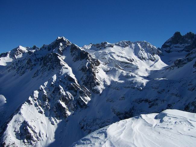 Beaucoup de givre de surface < 1800m. Quelques plaques friables, mais très localisées et superficielles. Les couches fragiles sont enfouies sout une dizaine de cms de neige très dense, elle-même recouverte par la neige récente. Aux qqs points observés, la cohésion entre ces 2 dernières couches était très correcte