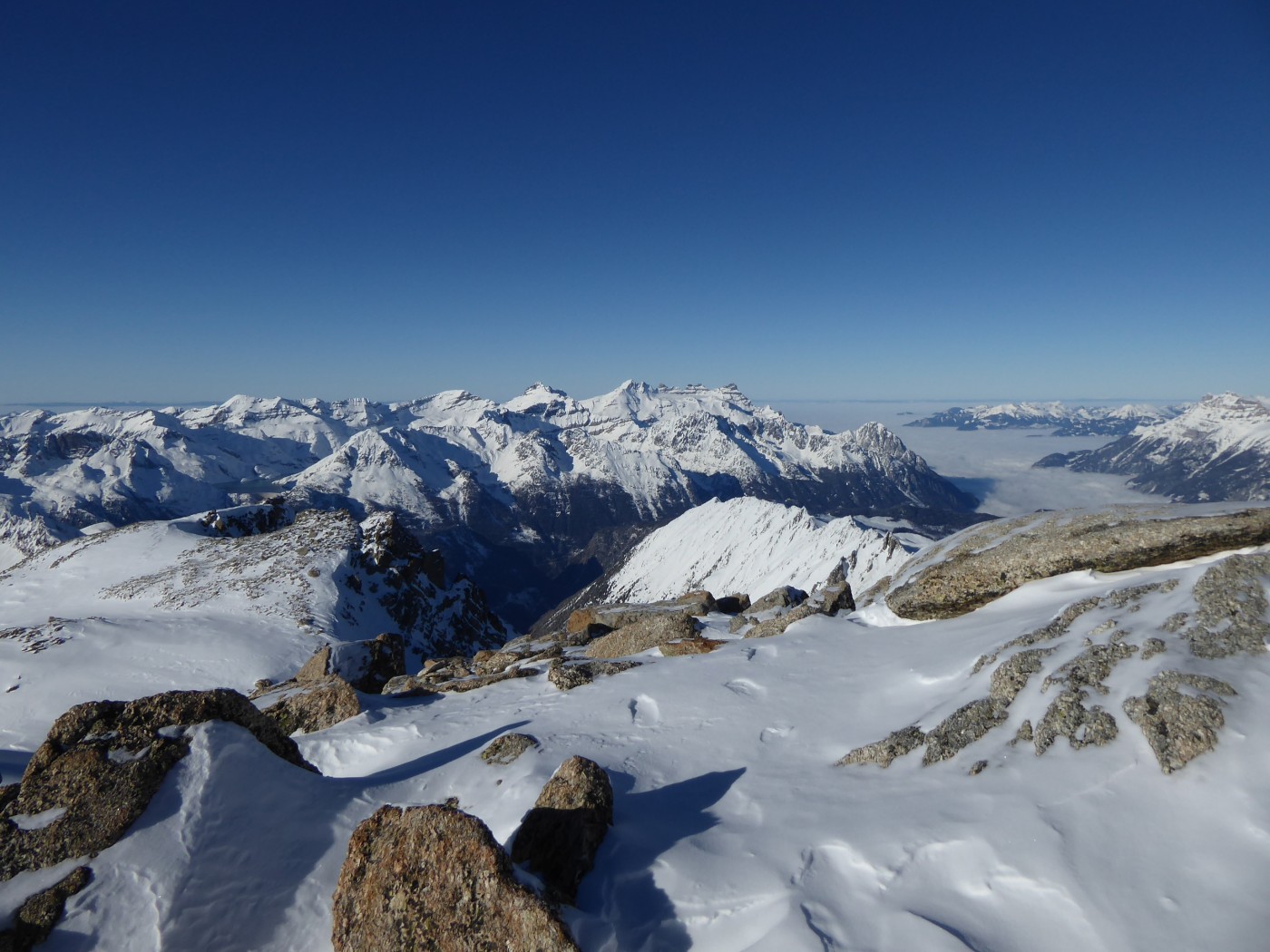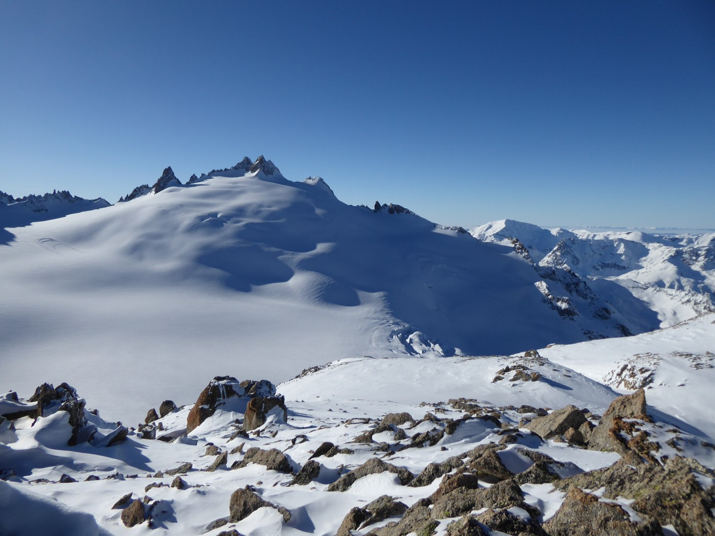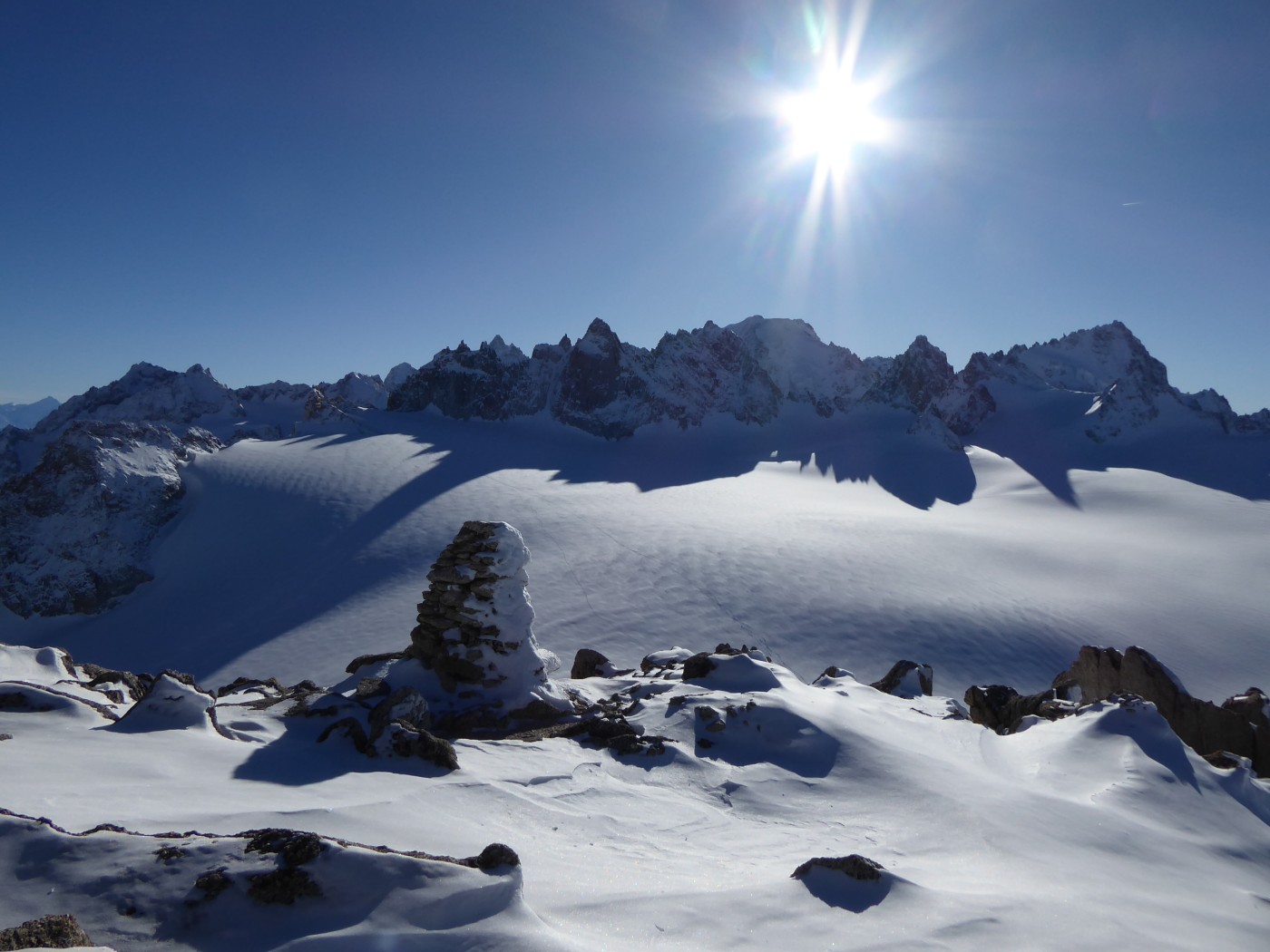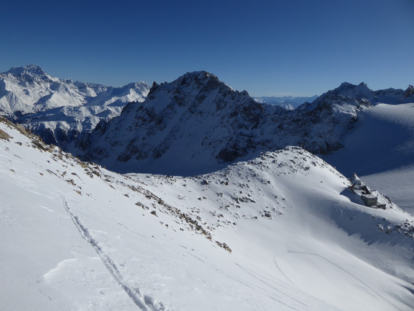 Jolie boucle qui permet de profiter du soleil entre la fenêtre du Chamois et le sommet. Une vingtaine de skieurs dans le val d'Arpette pour ce premier jour de beau de la semaine. Le couloir NE de la petite pointe d'Orny est déjà pas mal tracé (environ 10 traces), quelques traces aussi dans le couloir nord de la pointe d'Orny (D15). Nous sommes descendus à pied du sommet à l'entrée du couloir, l'enneigement sur les crêtes ne permettant de vraiment skier sans abimer les skis. Sinon c'était un peu le salon de l'aviation dans le secteur entre les rotations d'hélicos pour les déposes au col des Plines, les avions de tourisme qui font des touch and go sur le plateau du Trient et deux avions de chasse qui ont survolé le plateau du Trient quand nous étions sur l'arête NO des pointes d'Orny.