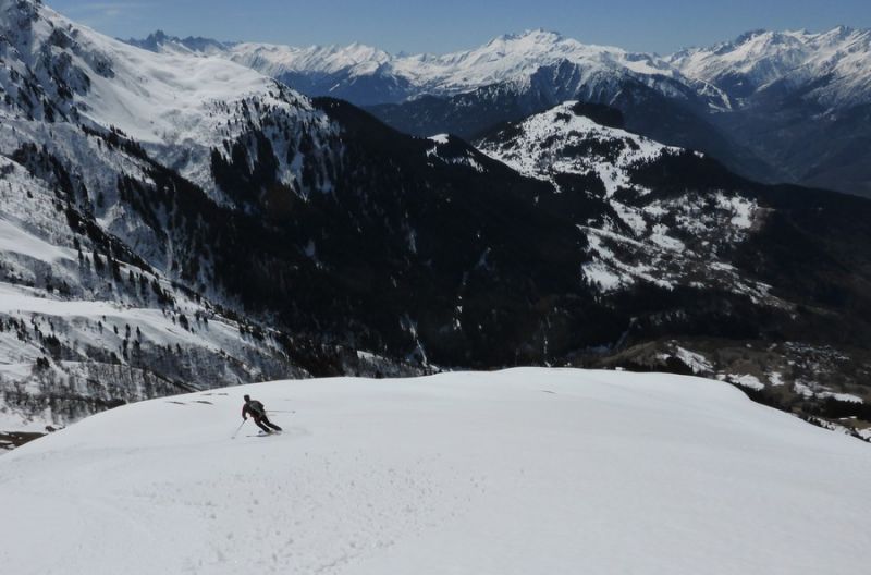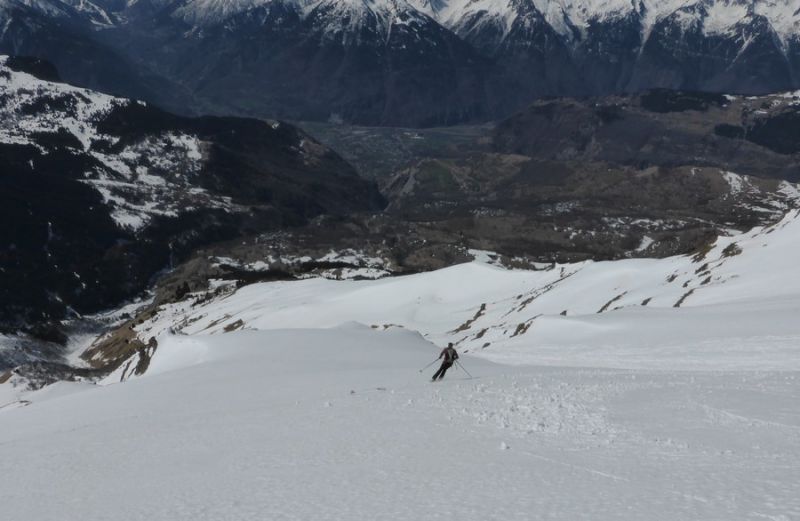 Vraiment un très beau toboggan, très lisse actuellement, à déguster avant que le bas ne se déneige (là on en est pas loin...). Autres impressions et photos [ici->http://lesbertonches.over-blog.com/2016/03/pointe-du-fut-versant-sud-ouest.html]