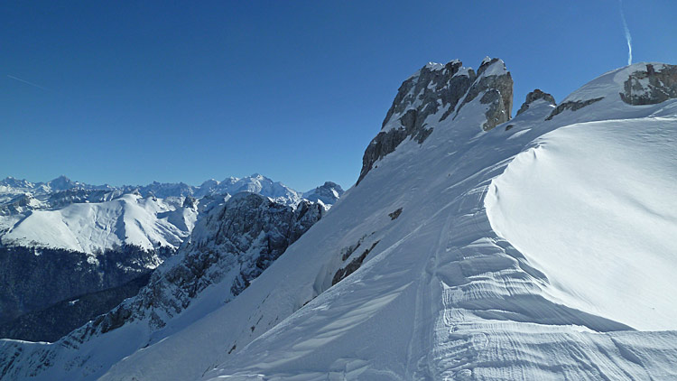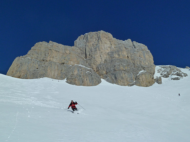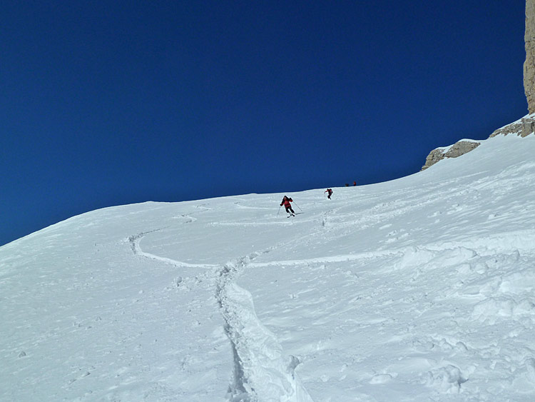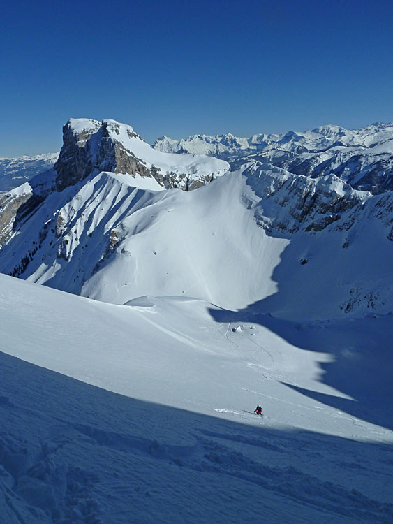 Des pentes paraissent chargées, mais l'accroche avec la couche sous-jacent est bonne sauf en sud raide (fond dur).