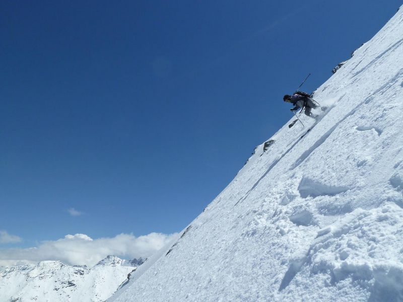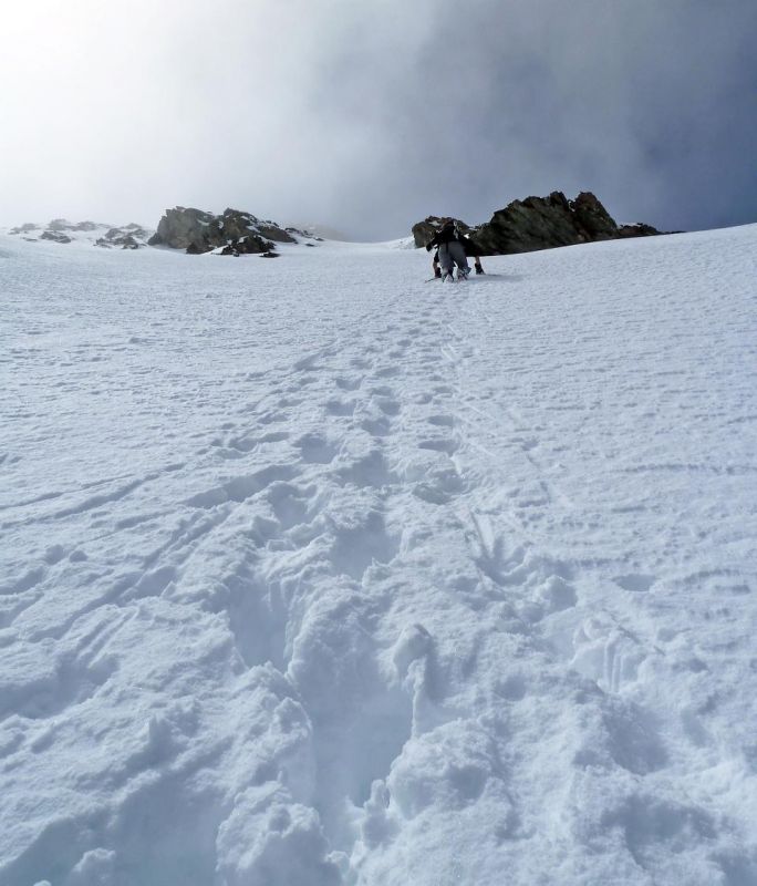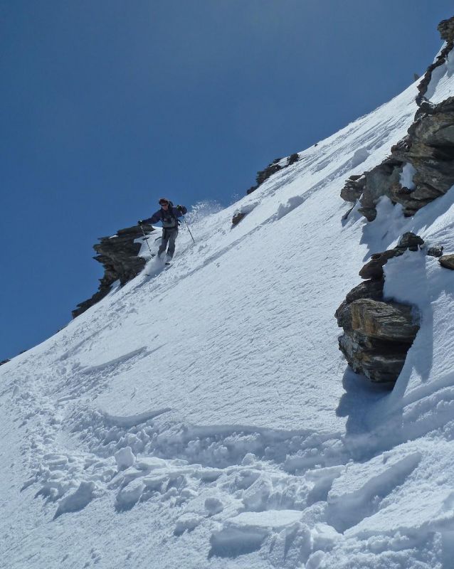 J'ai trouvé la face NE raide : 45°/350 dont des passages à 50°. Plus sérieux que d'autres 5.1 du secteur et pas plus facile que certains 5.2. Le Ripido la cote d'ailleurs 5.2/E3. De quoi discutailler un peu sur les cotations...
