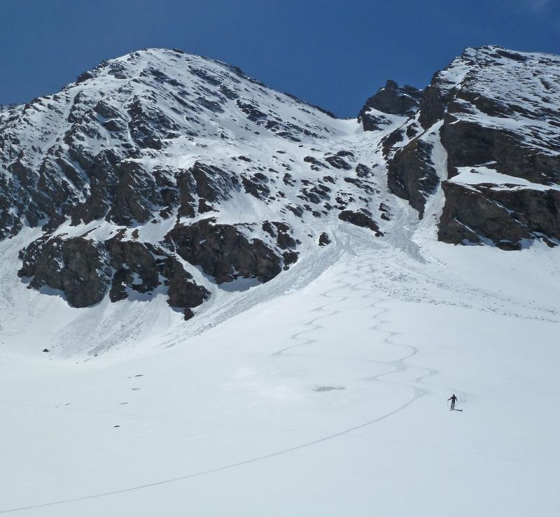 St Pierre d'Extravache - pré Maudru - vallon de Bramanette - face NE du sommet 3269 en a/r - remontée versant ouest de la pointe du Clôt jusqu'à l'épaule 2900 (au nord) - couloir est puis versant nord jusqu'à la voiture. D+/- : 2000 m.