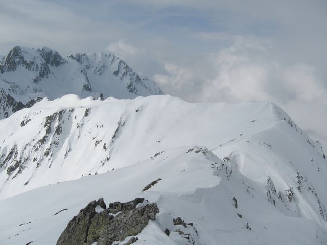 Un bon plan que ce versant Nord, ça ski sans probleme jusqu'à la voiture ( 2 ou 3 sections de qlqs metres sèches). Vue les conditions de neige + - béton du Gd Canal on a renoncé à F15. Coté méteo on ai passé complètement au travers des nuages bas et autres rincées en cours dans la vallée (merci à Cedric pour son coup de bigo durant notre montée , et nous avertir que ca flottait sur Chambé et Granier ... mais on était au soleil et ça a duré ... si, si ...).