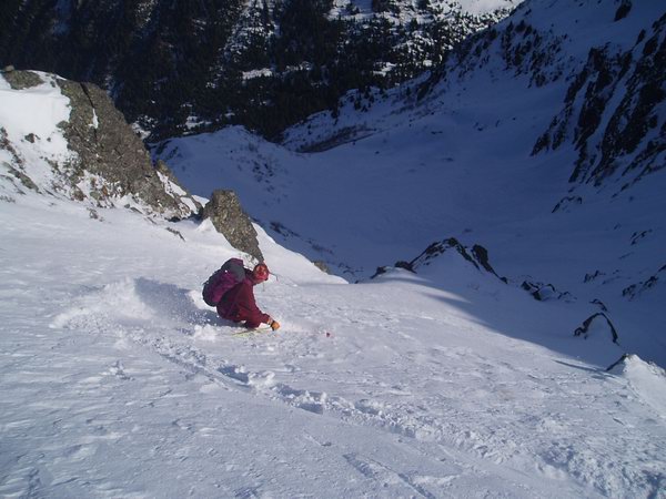 Un couloir encore vierge et de la bonne neige à 2 pas de la maison. On ne peut que souscrire au commentaire de [Philippe -> http://www.volopress.net/volo/sortie2298.html], les possibilités du coin sont immenses et on ne finit jamais d'en profiter.