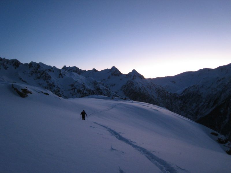 Une bien belle sortie matinal avec Louis! Un lever de soleil splendide sur le grand Pic , un peu de carrelage dans le couloir (histoire de nous réveiller un peu) et de la bonne poudre un peu partout!