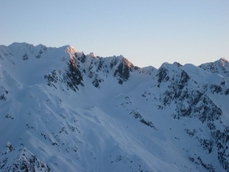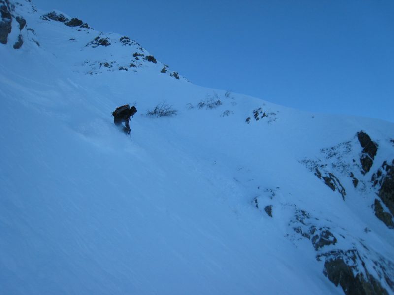 Des purges dans le couloir , la poudre glisse dans les zone raides sur le fond béton (croûte de pluie). Sinon RAS. La neige commence à croûter en Sud, en versant Est ça n'a pas encore bougé.