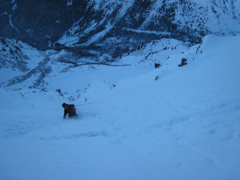 Sous le couloir 1900m NC 20 Poudre dense avec givre de surface .