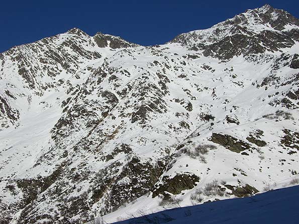 Champel => chalets de Miage => pointe inf du Tricot par le sud : grands vallons très skiants avec petit couloir final