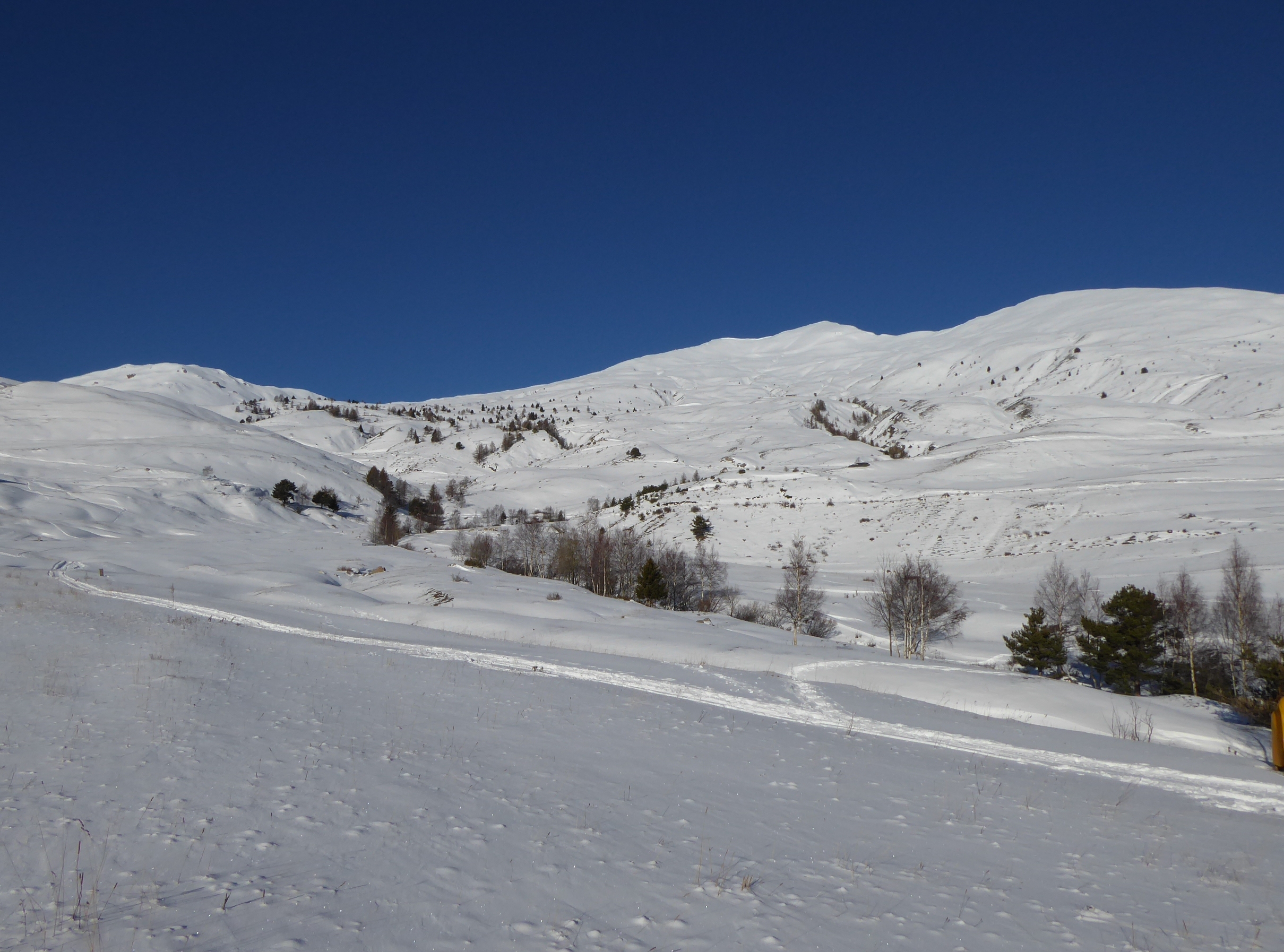 Heureusement que le relief est peu agressif car la couche de neige n'est pas épaisse. Grande classique du secteur : nous étions 10 sur ce parcours aujourd'hui.