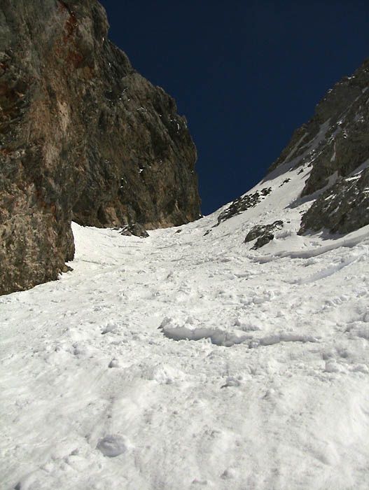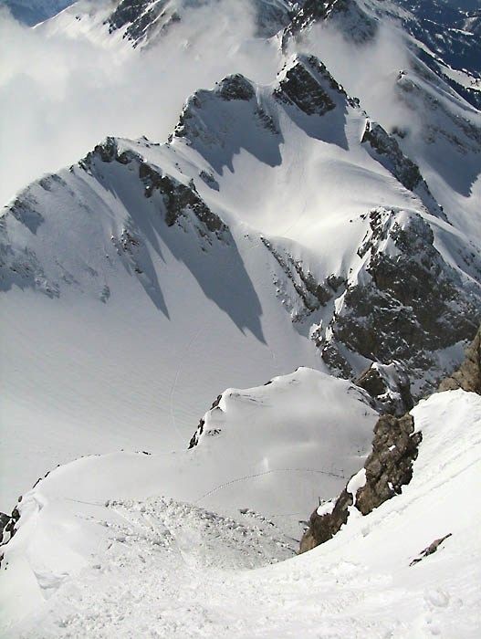 un skieur a fait partir une petite plaque sous le couloir en s'aventurant un peu trop près d'une rupture.