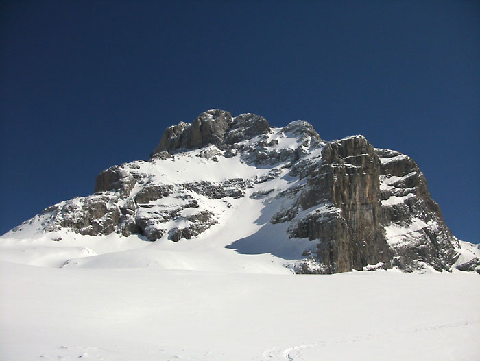 Croisé la petite équipe de Laurent, qui terminait sa descente sous les cheminées. Merci pour le reste de trace.