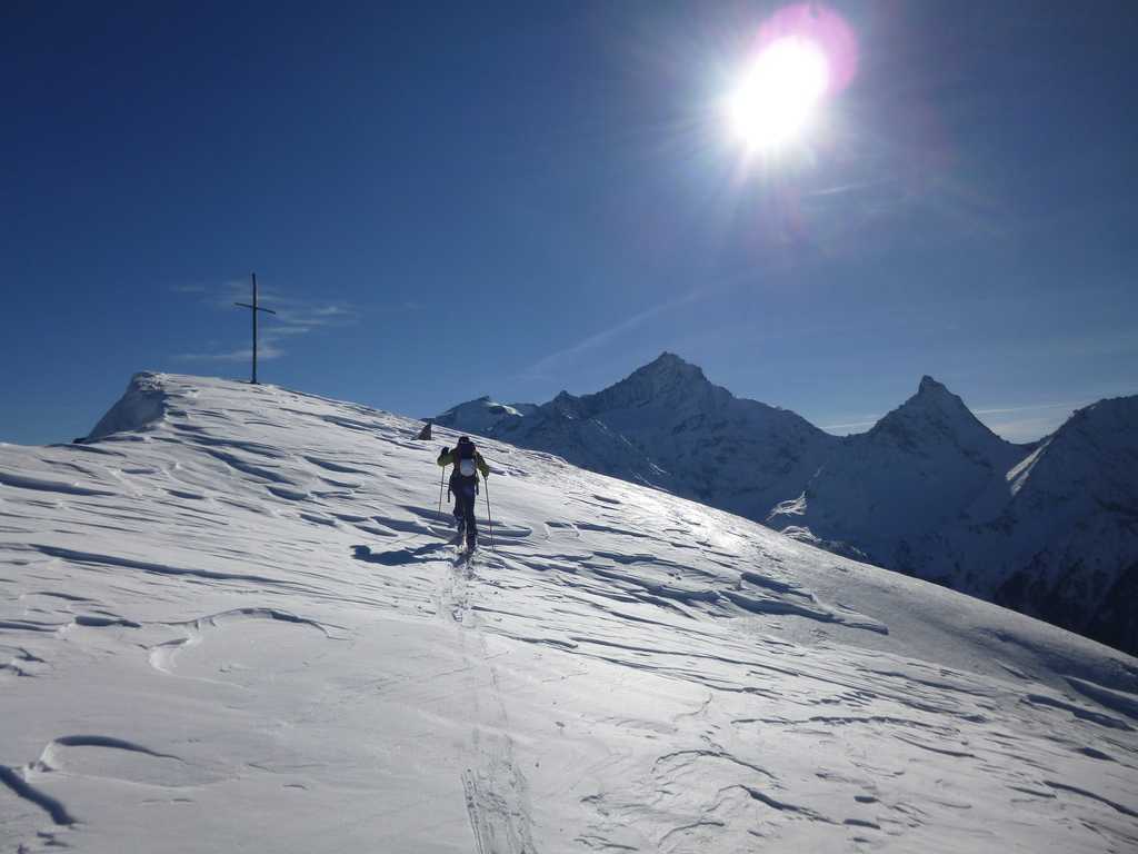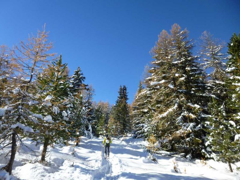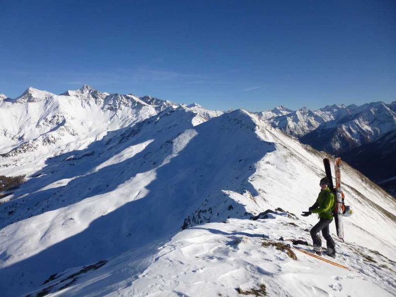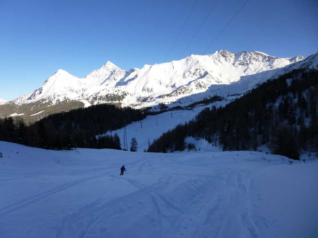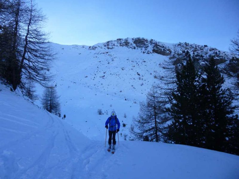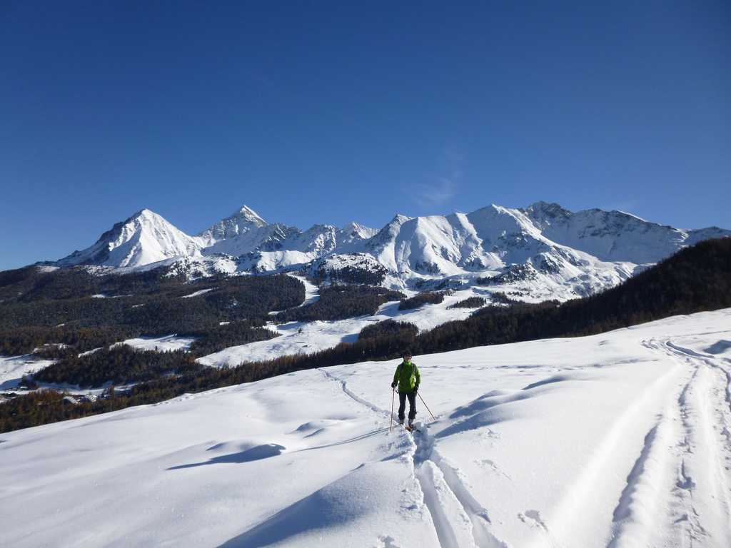 Comme le laissait supposer les webcam, il y a moins de neige dans le val d'Aoste qu'en Haute Savoie. La saison de ski de rando à Pila a quand même commencé avec une bonne cinquantaine de skieurs pour remonter les pistes de la station. Sur notre itinéraire, 3 personnes nous précédaient à une heure d'intervalle. Personne par l'itinéraire NO depuis Ozein (peu enneigé). La boucle par la pointe du Drinc était une bonne option aujourd'hui pour avoir une neige correcte (skis cailloux conseillés quand même).