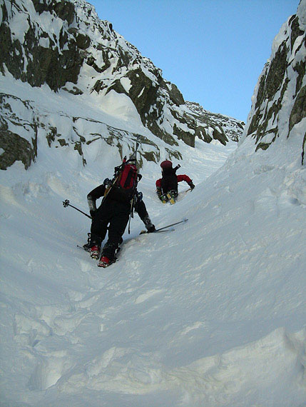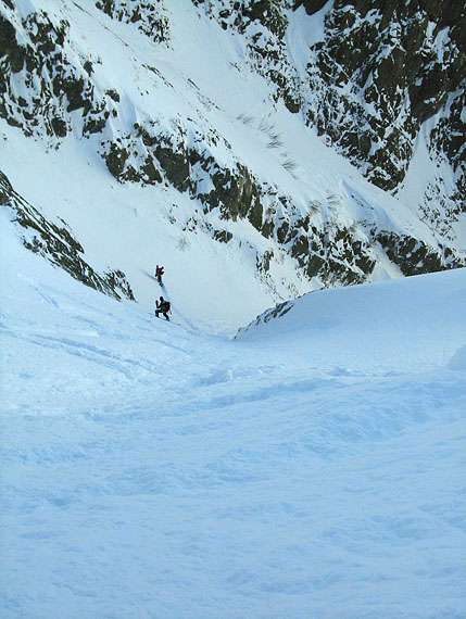 Quelle journée !! Les conditions n?étaient pas loin d?être parfaites. Quelle ambiance dans l?oriental skié intégralement avec 150 mètres pas large très raides en haut (>50°) plus un passage de 20 m encore plus étroit. (cot. Proposée 5.3/E2, ) depuis le haut. Après celui-ci, le couloir central " nous laisse " partir de la crête. Des journées comme ça on en redemande !! Ca skie sans toucher sauf entre 1170 et 1300 (chemin sous bois peu enneigé)