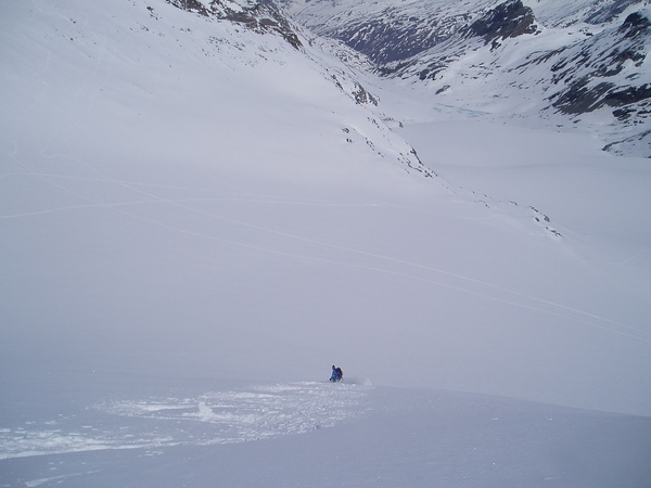 Montée au Col d?Arbéron -> descente sur le glacier de Baounet -> montée à la pointe de la Valette -> redescente nord, remontée est de la pointe des Lauzes Noires -> descente sud ouest sur le col de l?Autaret -> retour par le vallon de la Lombarde. D+/D- :1800, difficulté 3.2 pour la descente SW des Lauzes Noires.