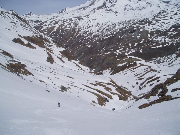 On voit du pays (et des pentes à descendre?) pour un dénivelé raisonnable. Aux grandes étendue du vallon de Baounet, succède le très beau versant est Du Ribon/Charbonnel. Très bonnes conditions ce jour pour descendre le long vallon de la lombarde : bonne glisse et toujours les ponts de neiges où il faut pour passer d?une rive à l?autre (sinon ça doit pouvoir être assez galère). On arrive à ski sous le refuge puis une fois remonté à celui-ci on peut rechausser pour rejoindre la voiture.