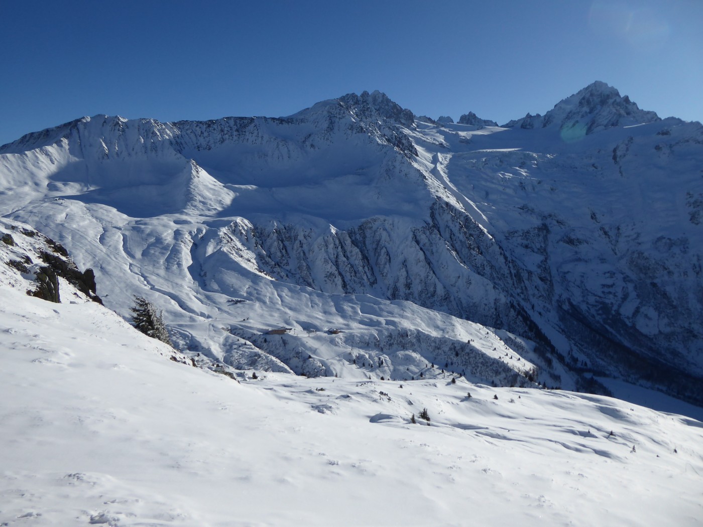 C23 jusqu'à l'aiguillette des Posettes. Descente par les pentes SE jusque 1850 env. Remontée à la tête de Balme, descente par les pentes sud puis par les pistes parfaitement damées.