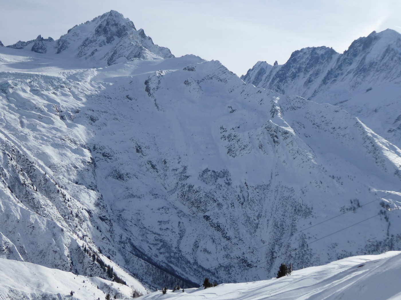 Montée par C23. Descente versant NO jusque 1850 sous la télécabine de Vallorcine. Remontée à la tête de Balme par Belle Place. Descente versant sud puis par les pistes sur le Tour.