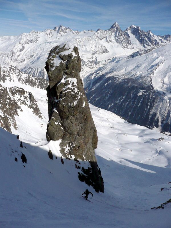 Après une jolie balade poudreuse la veille à l'aiguillette des Houches (A1/CHA mais en partant de Servoz), rebelotte en sortie de l'après-midi dans ce coin très bien enneigé. Merci à LPR pour l'idée et les conseils. Situé à côté de l'Index, le Pouce, c'est Majeur !