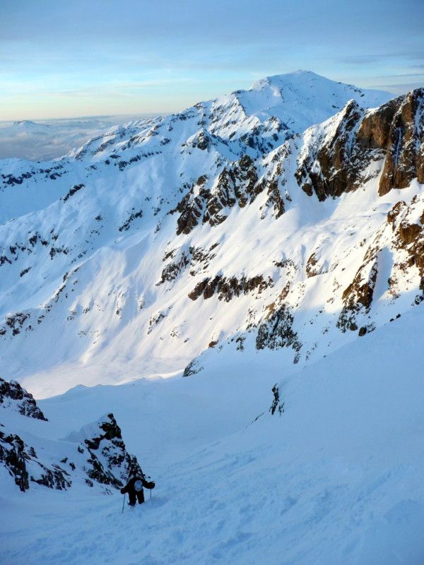 A7 mais, compte tenu de l'horaire de départ très tardif, en A-R depuis l'Index avec retour à la nuit tombante fort sympathique sur les pistes désertées. Nous n'avons pas skié l'édifice sommital (caillouteux) mais sommes partis de l'arête.