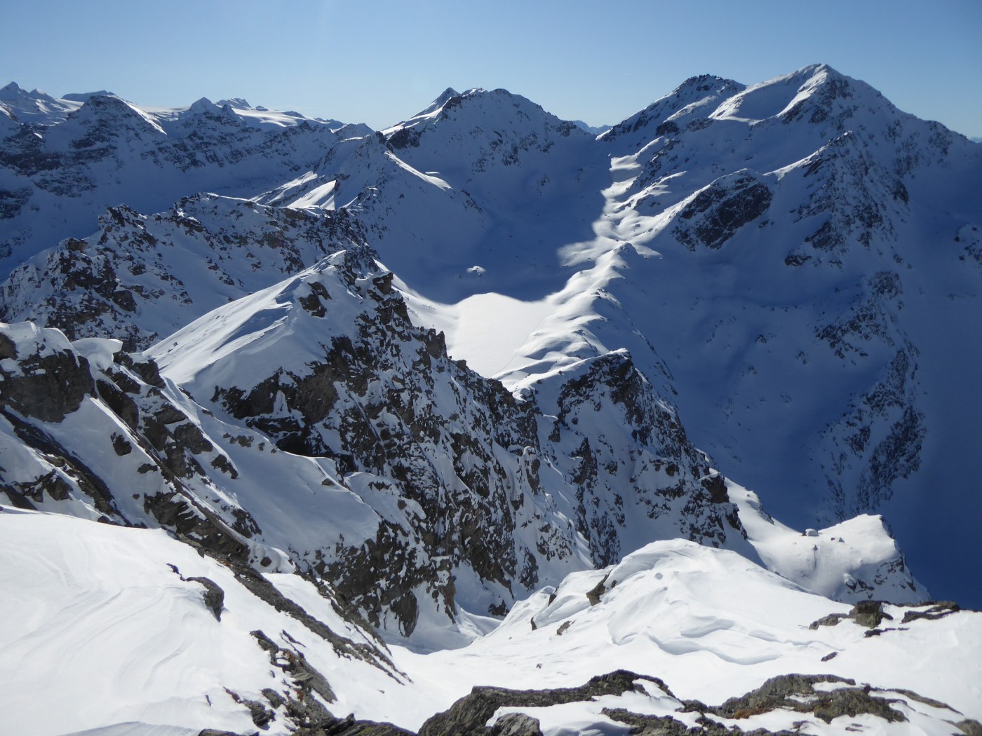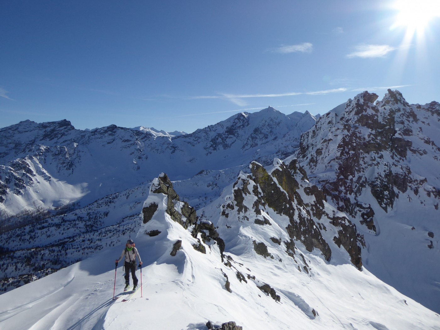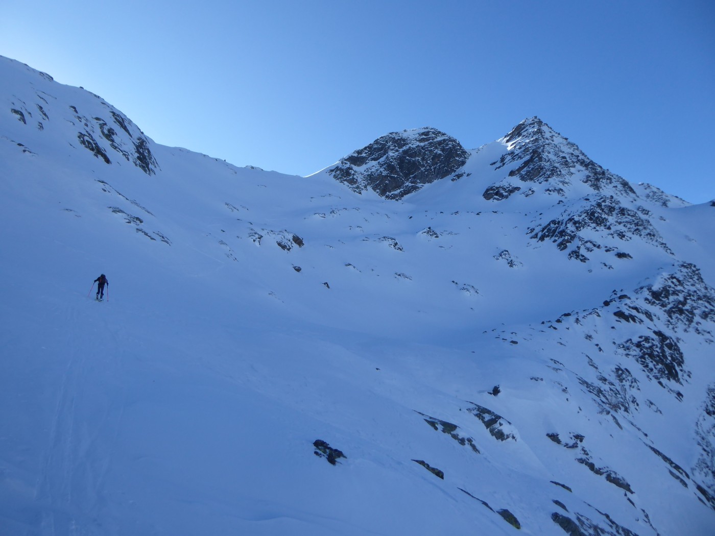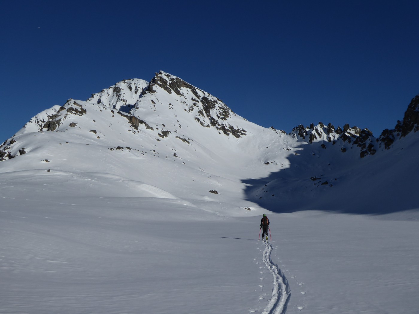 Le vent a du plus souffler ici que dans la vallée du Grand Saint Bernard où elle était poudreuse hier [https://www.volopress.net/sortie5835.html]. Ici elle est croutée sous 2000 et dure avec par endroit 5cm de poudre transportée par le vent. Bonne impression de stabilité dans les pentes parcourues. BRA à 3.