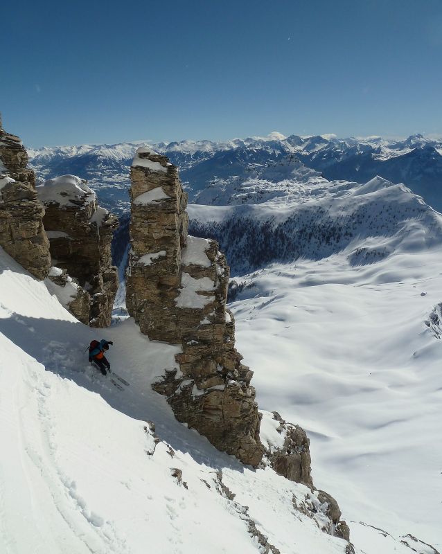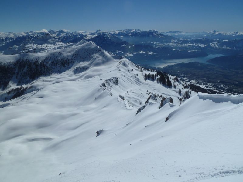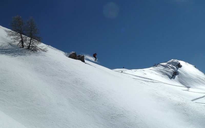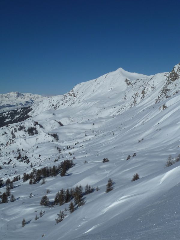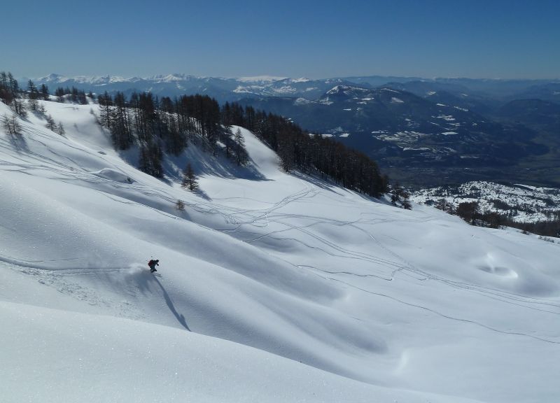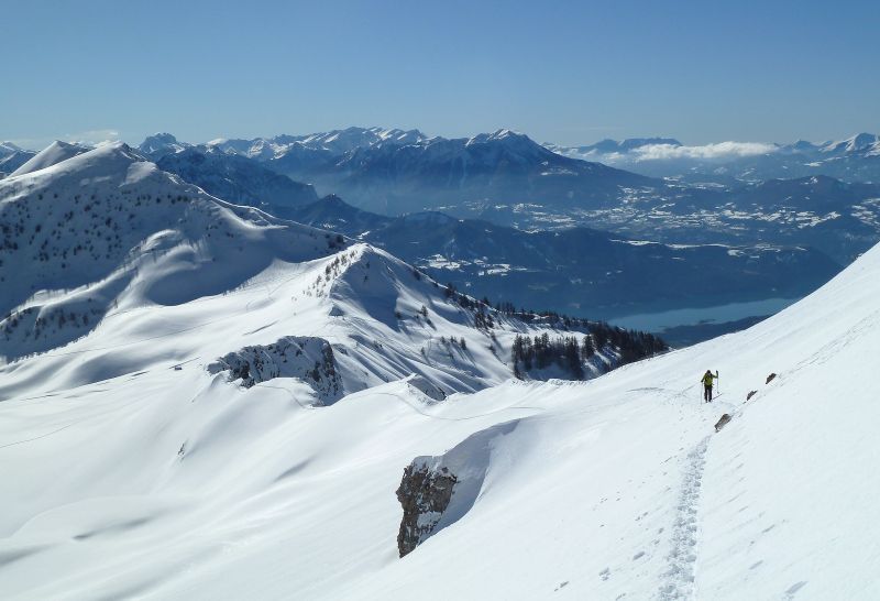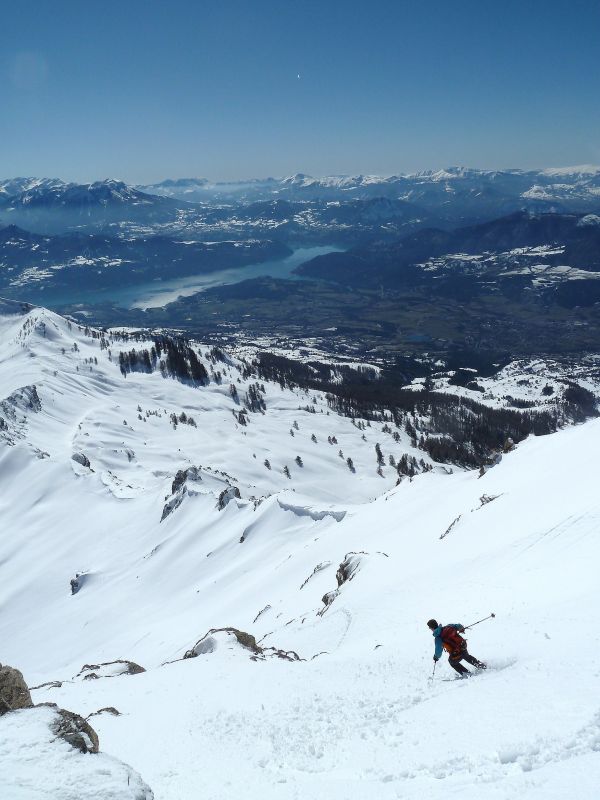 Quand y en a plus y en a encore... de bricoles à visiter dans le secteur Piolit-Pousterle-Chabrières. L'enneigement est bon dans le secteur, de même que la qualité de ski si l'on évite la croutée des versants chauds sous 2000 m. Ajoutez-y un lac de Serre-Ponçon en décor, vous obtiendrez deux skieurs pas malheureux