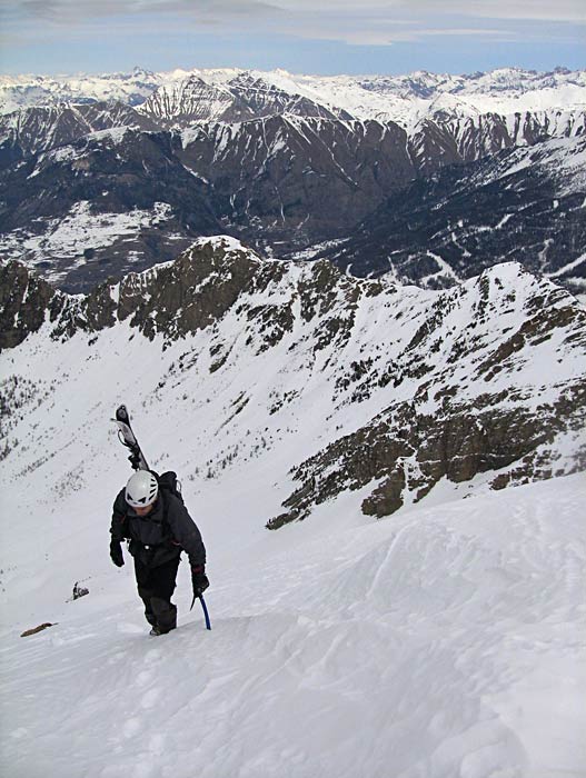 le soleil se voile pas mal et à la sortie du couloir on monte pour atteindre le sommet en passant par le couloir nord.