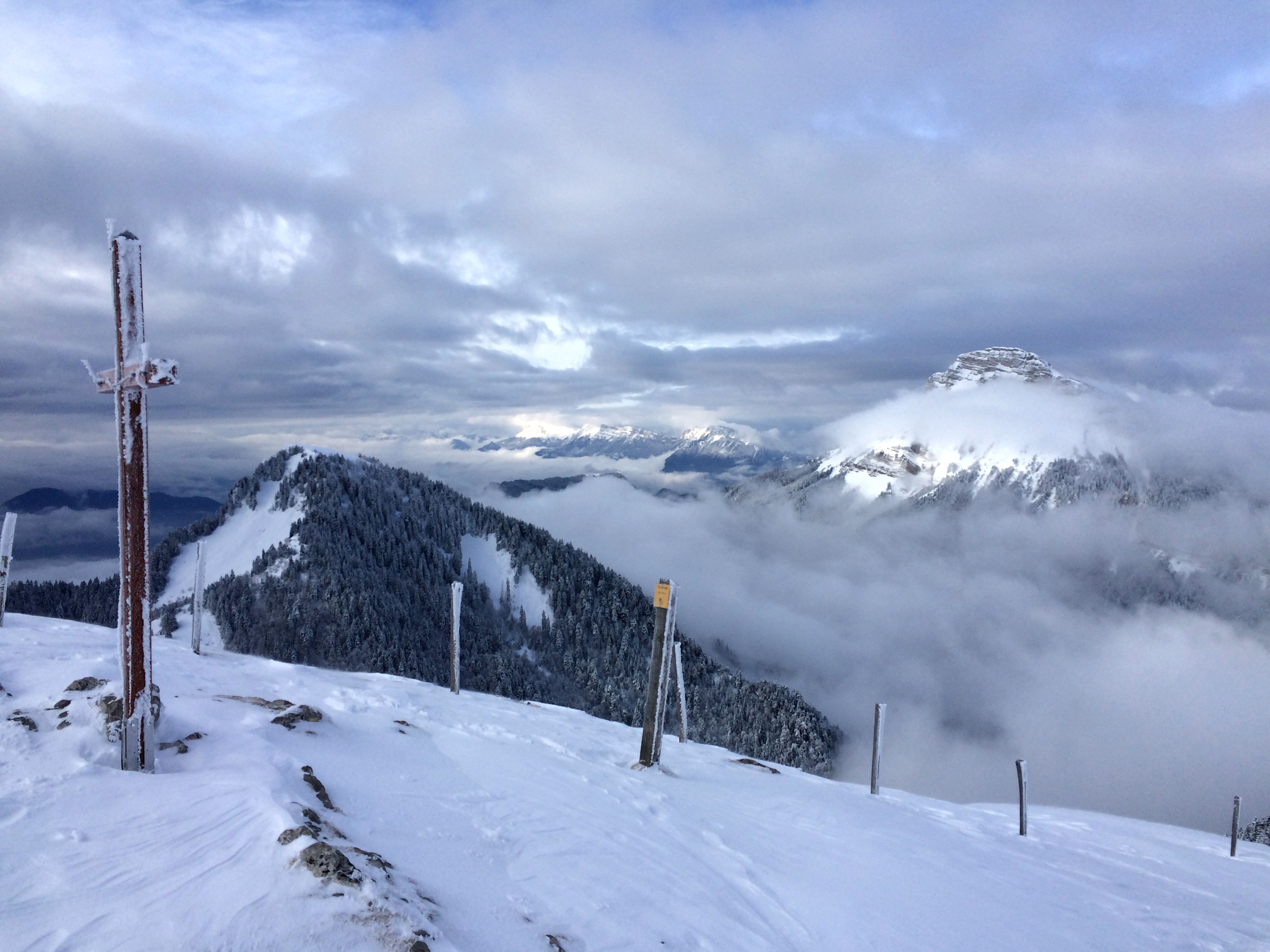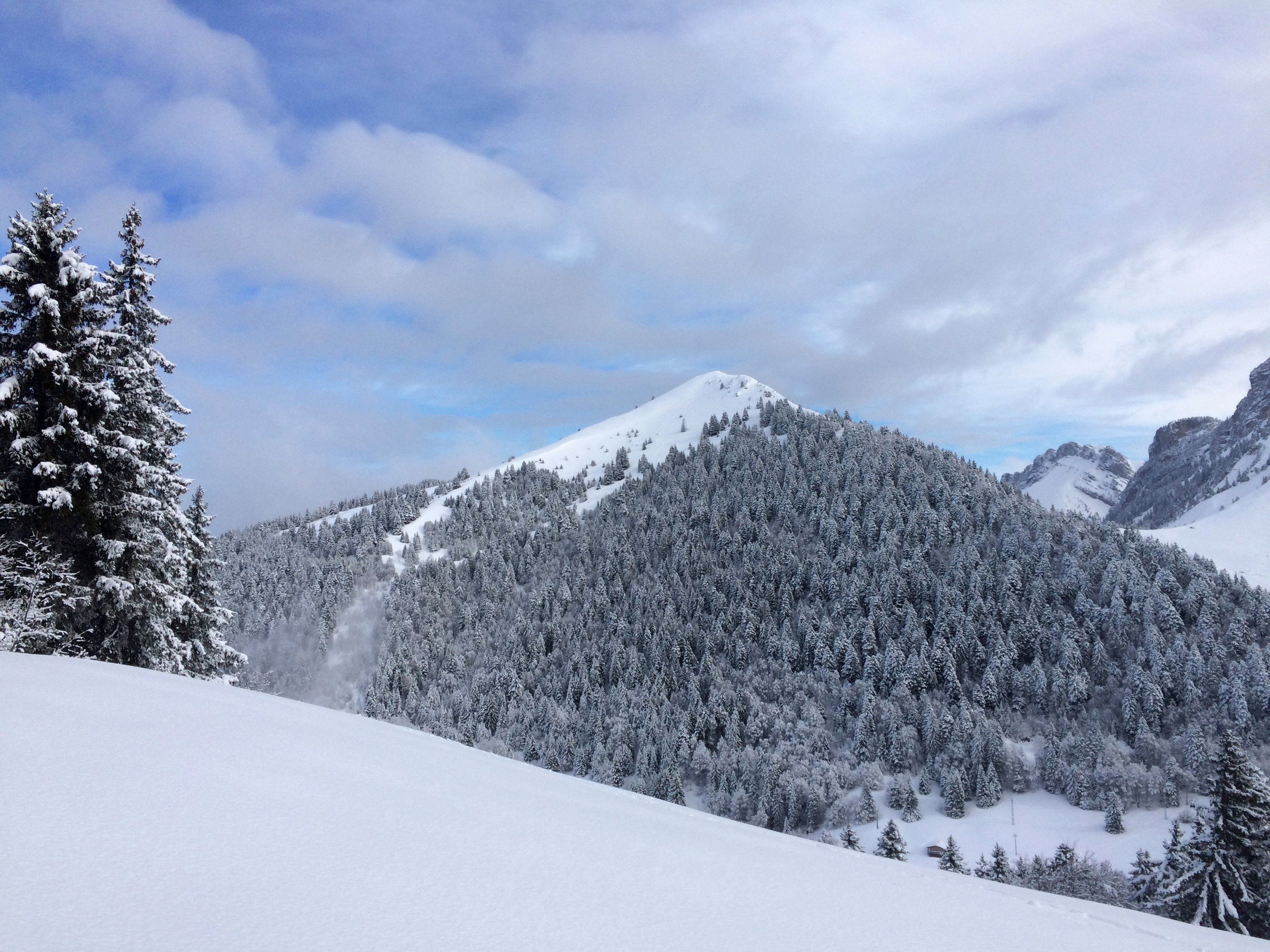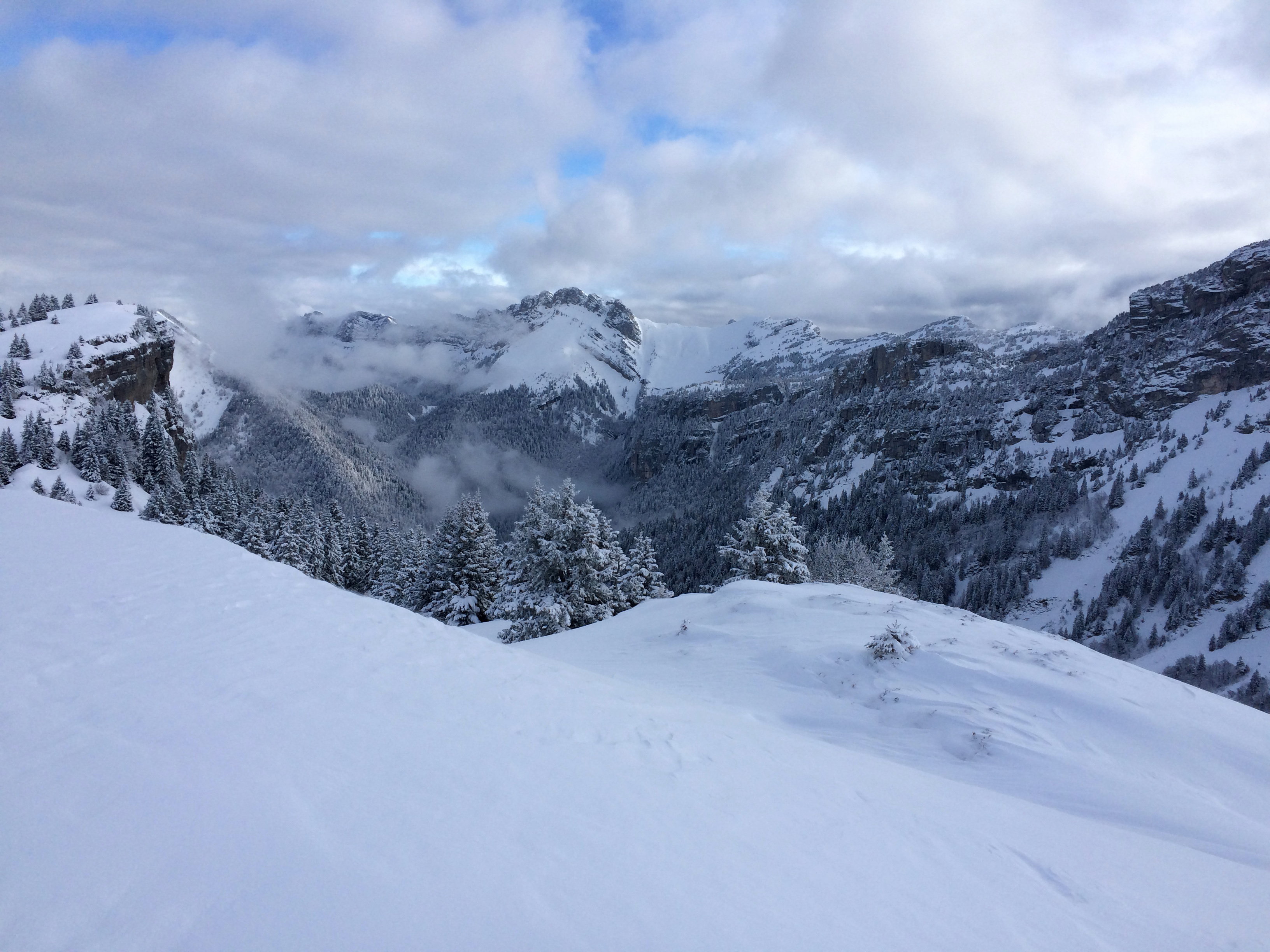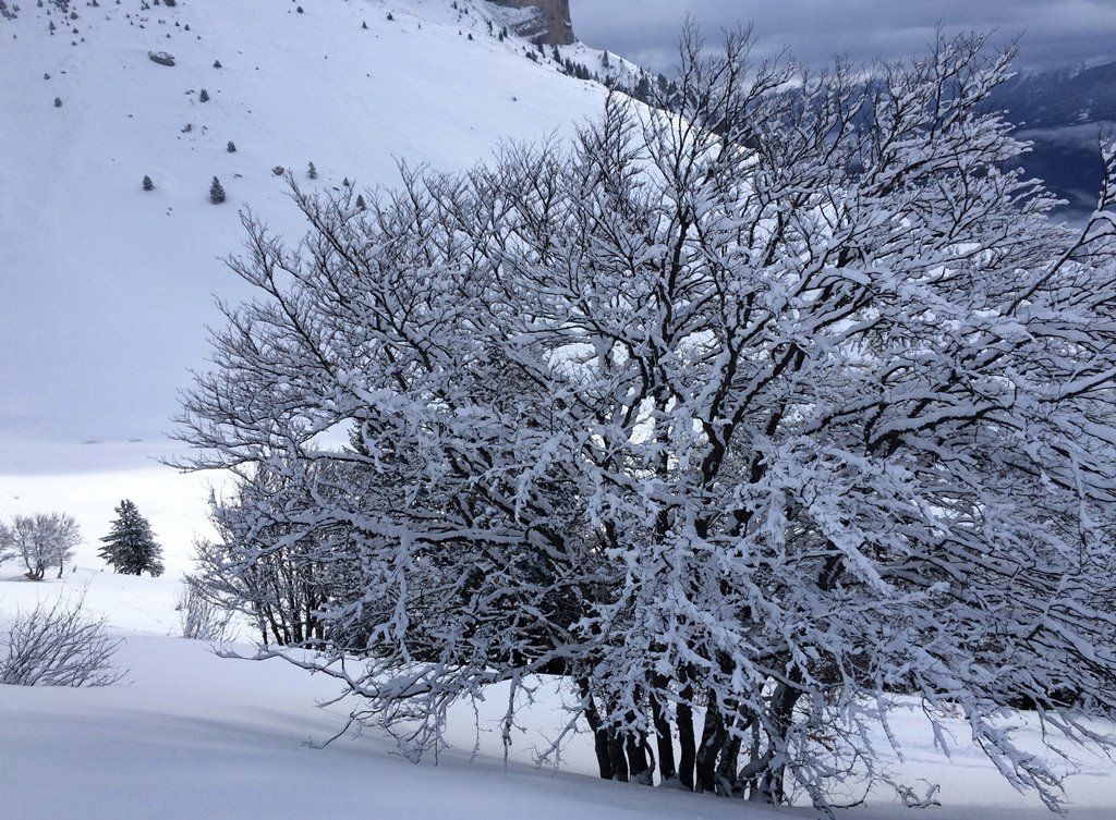 Poudre dense sur le tout haut de Pravouta, sinon très légère ailleurs. 1,4m sondé à 1250m en NW au pied du Charvet