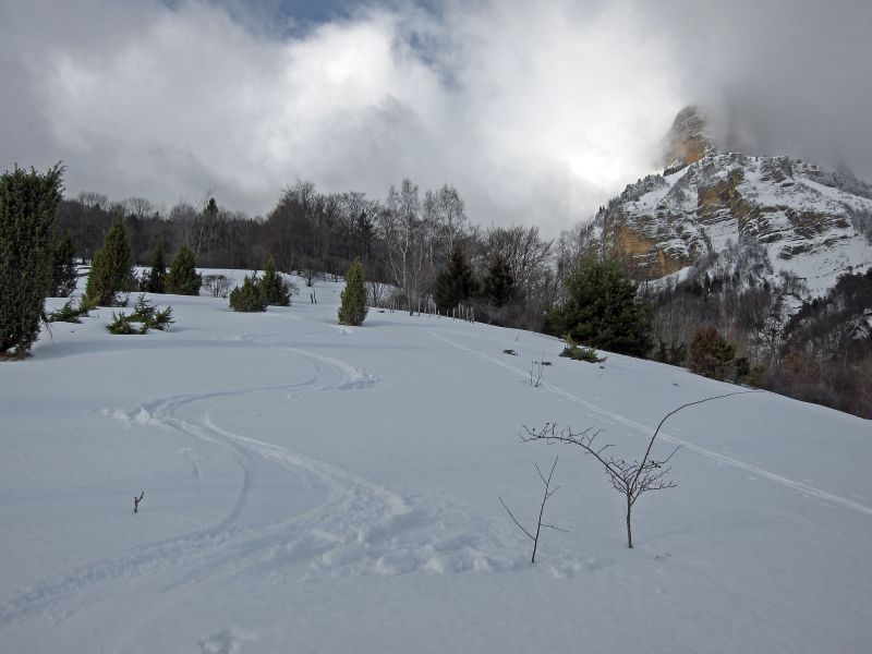 Je suis parti de la route de St-Pancrasse au niveau des Meunières. On rejoint la route du col du Coq au virage 1220. Itinéraire intéressant et skiant tout le long.