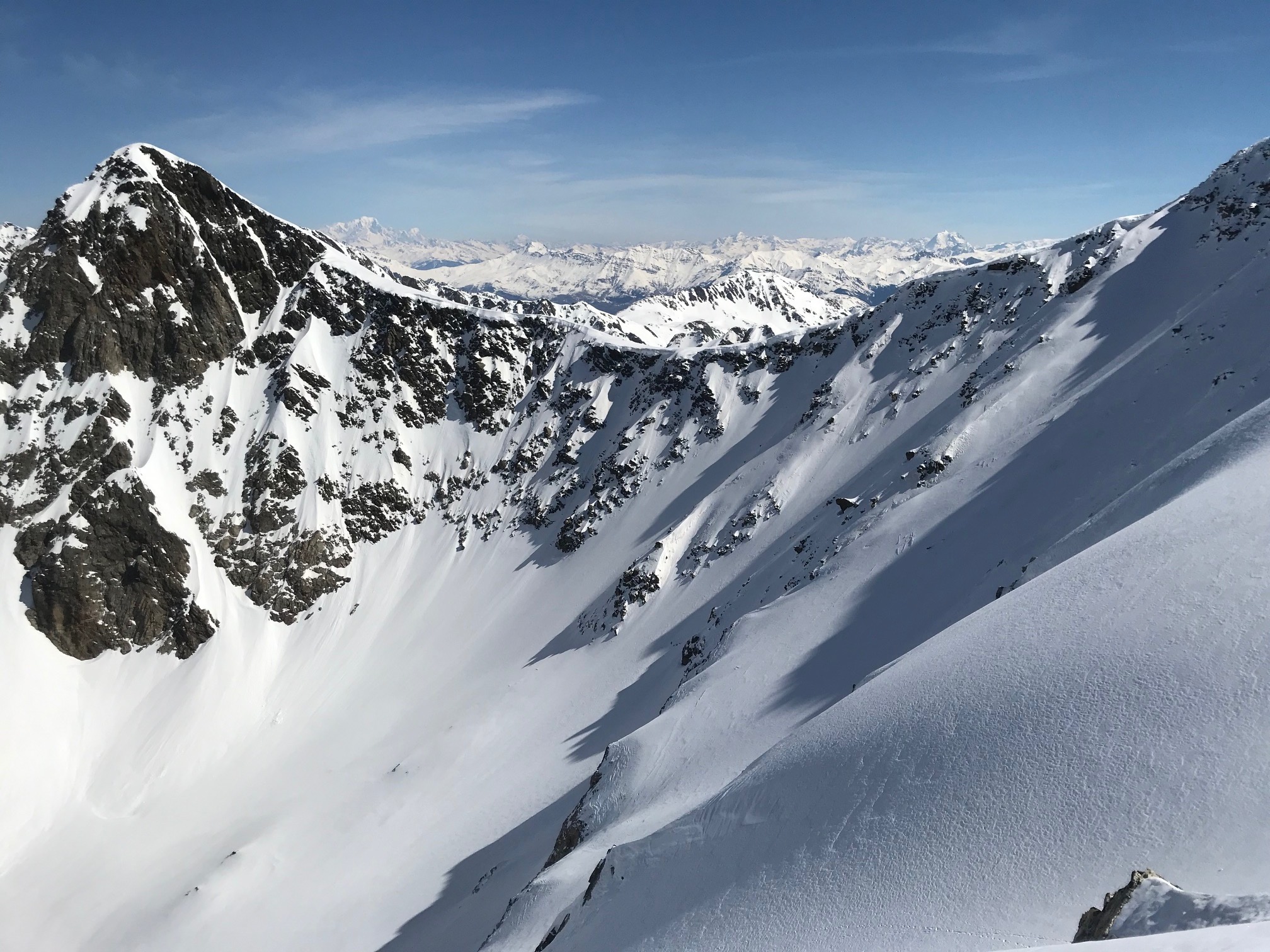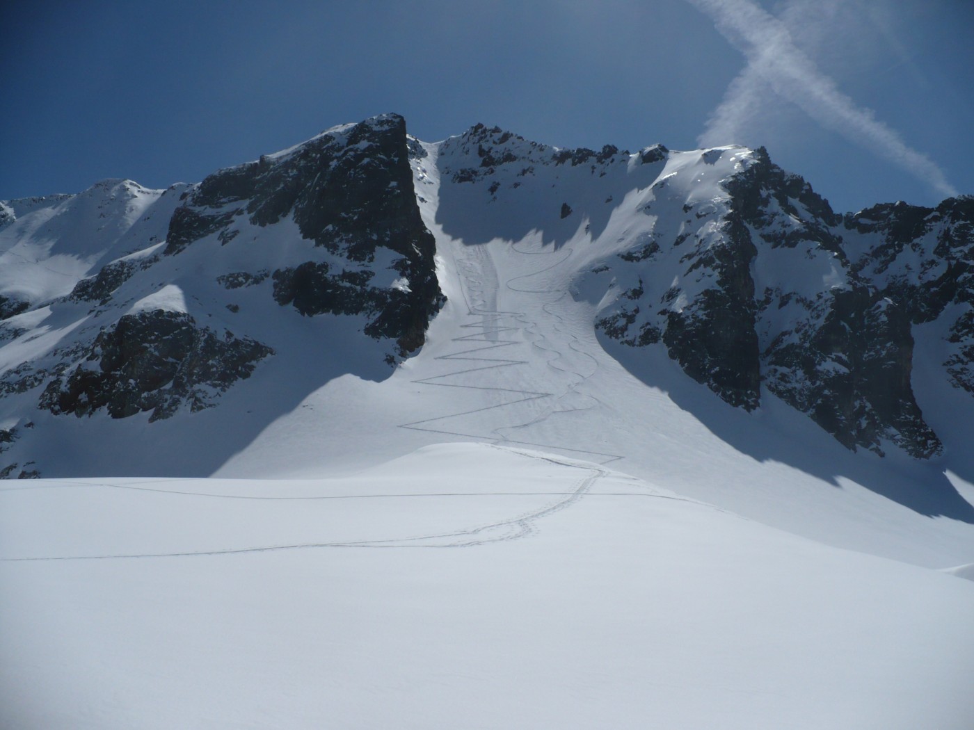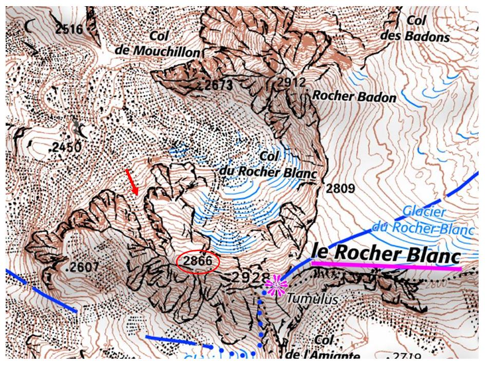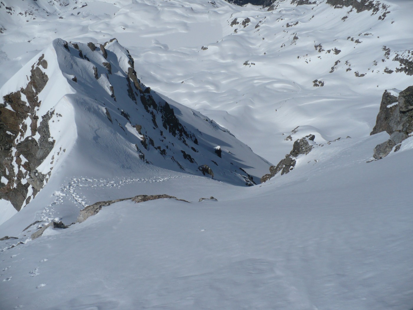 Combe du col de Mouchillon, col du Mouchillon, couloir nord/ouest, arête jusqu’au point 2866 m.