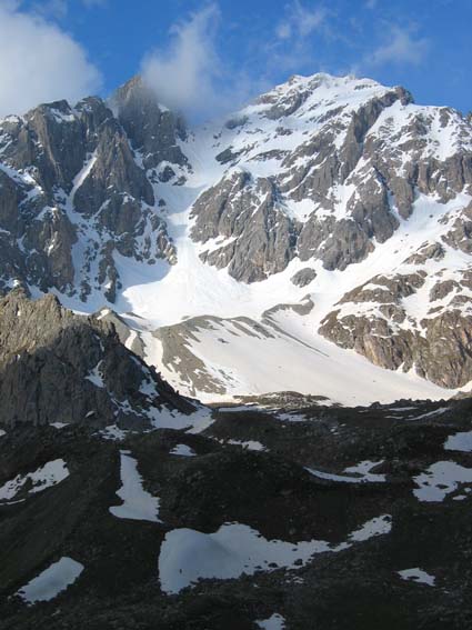 col des rochilles->col des cerces->pte des cerces montée par rive droite descendue par rive gauche (pass.45° dans les deux cas)->lac des cerces->collet de la fourche->rochilles D+/D- : 1200 ; ski : 3.3