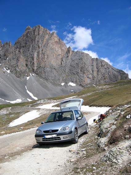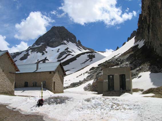 "Esprit d'équipe, Force et Honneur", c'est écrit avec des pierres juste au-dessus du camp des rochilles, point de jonction de cette mini-boucle. Après avoir hésité à prendre le départ, l'incertitude meteo m'a fait opter pour ce circuit allégé mais tout de même intégralement skié. Je redoutais surtout l'arrivée d'une grosse pluie rendant hasardeuse la descente en voiture de la piste des rochilles. A noter 200 m de portage pour la clapiere, mais un couloir pas trop abîmé.