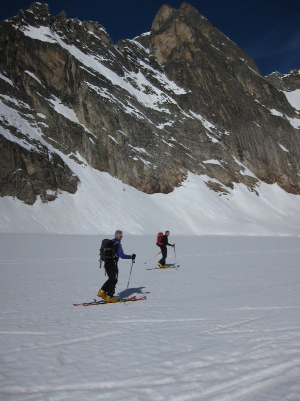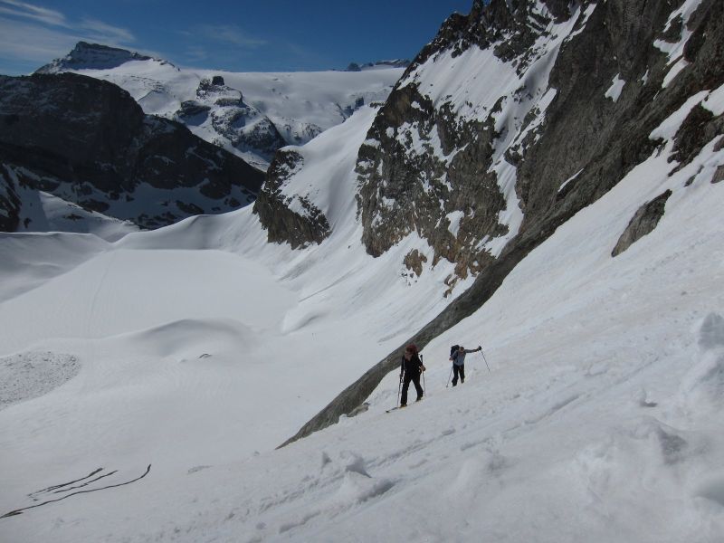 Excellent regel. Nous pensions être un peu tard, compte tenu de l'effet de four sur le Glacier du Vallonet entre 2600 et 2800m. Il n'en fut rien avec un départ du sommet à 12h15, la partie plein est bien que molle sur 15cm présentait un fond bien ferme. Conditions idéales.