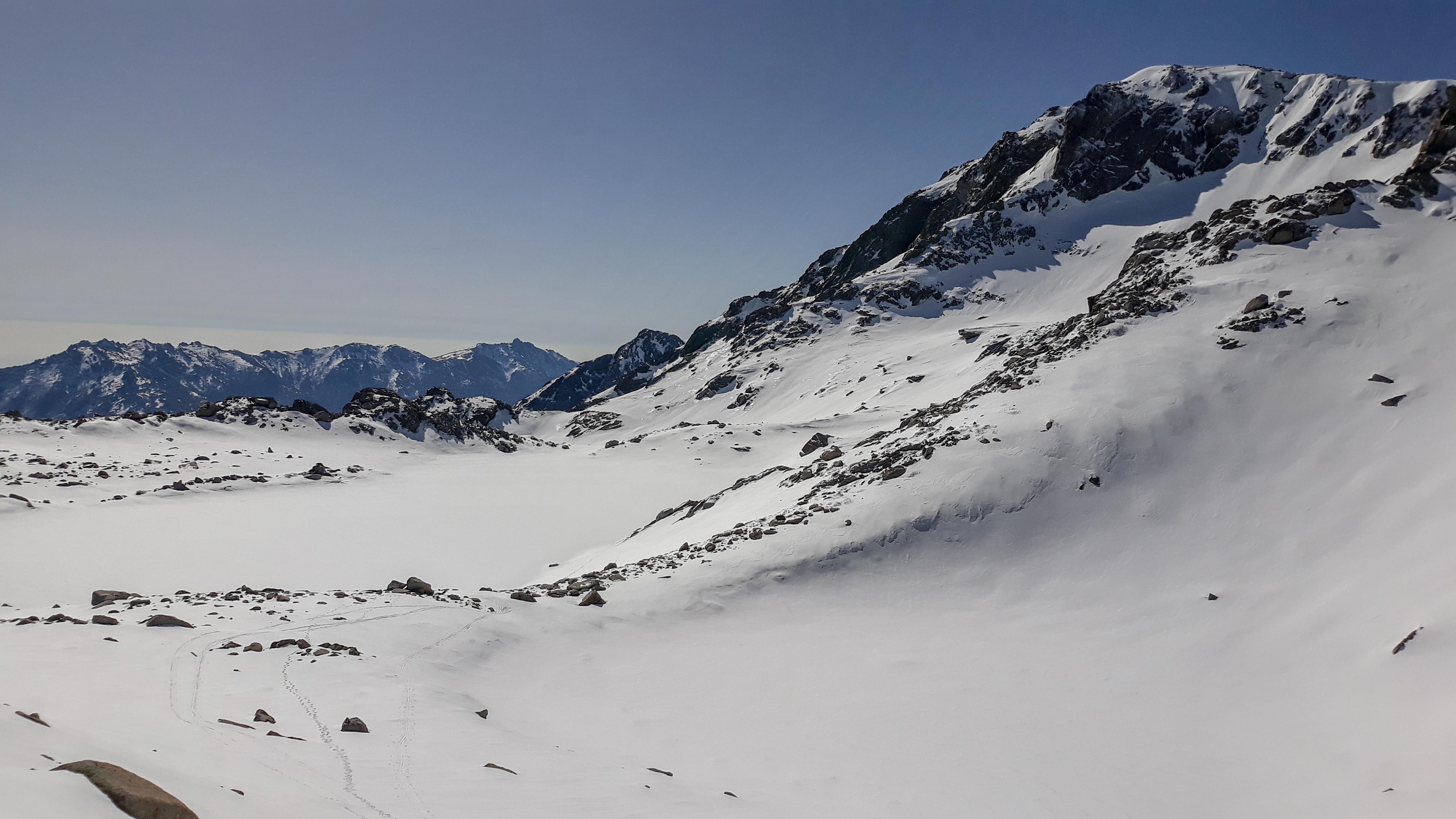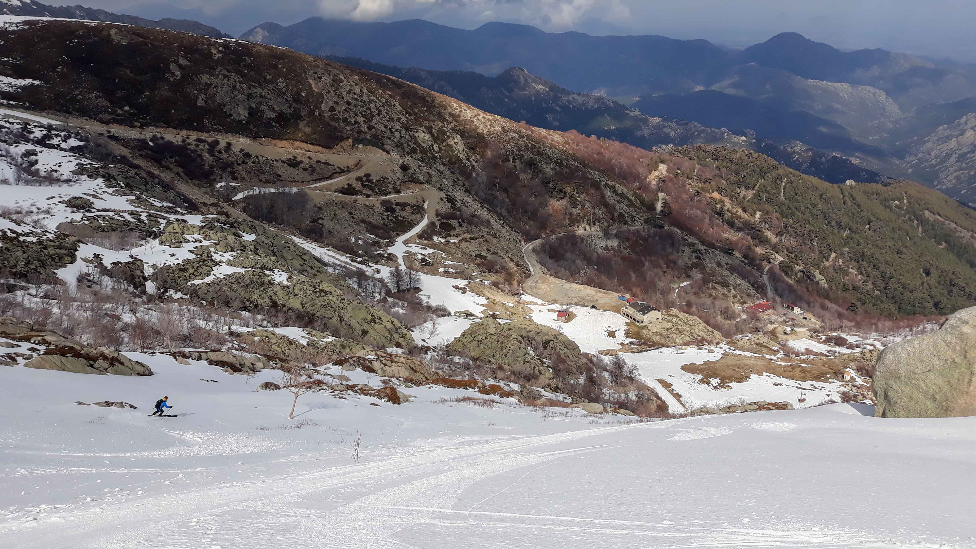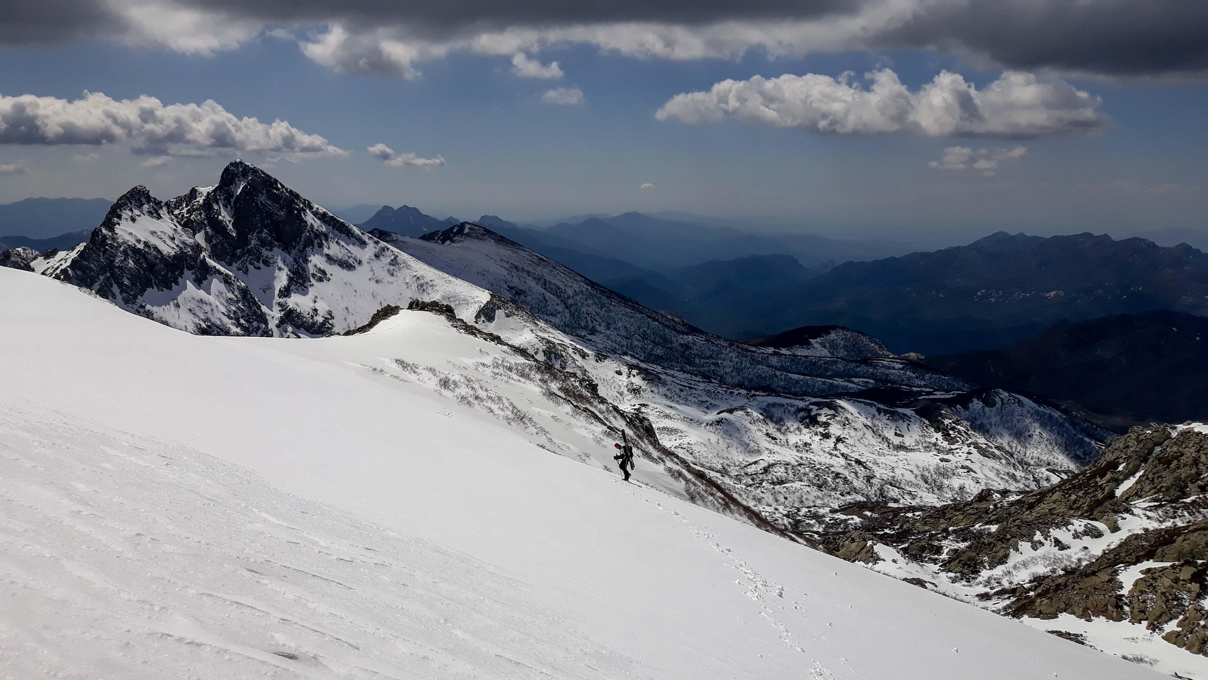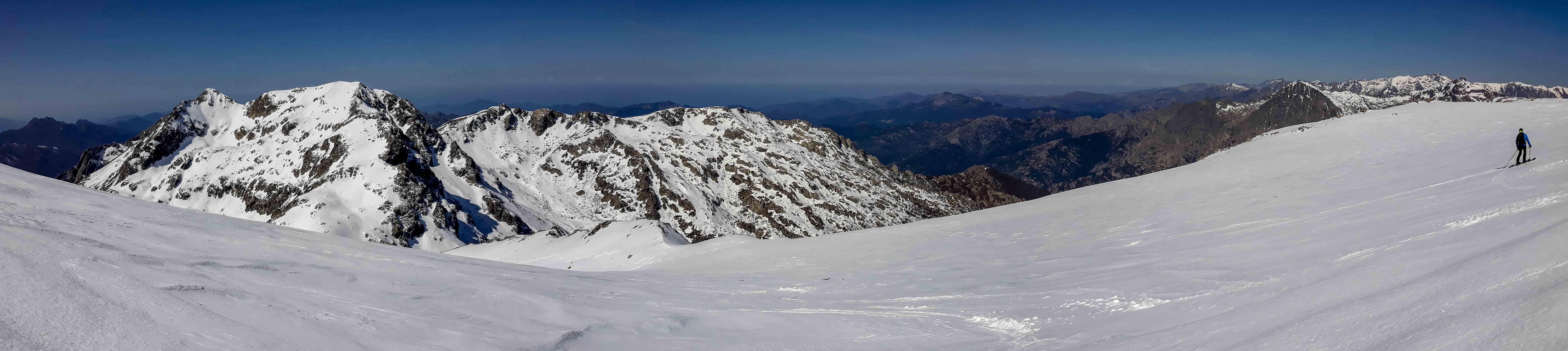 Joli petit tour où après un petit échauffement au Renoso, on est allé chercher la poudre en versant nord de la bocca della Cagnone. La remontée à la Punta alla Vetta par la bocca lagione est splendide, s'en suit une descente pas raide mais assez exposée par endroits du versant est d'alla Vetta (barre à contourner puis petite remontée pour prendre la pente du bas)