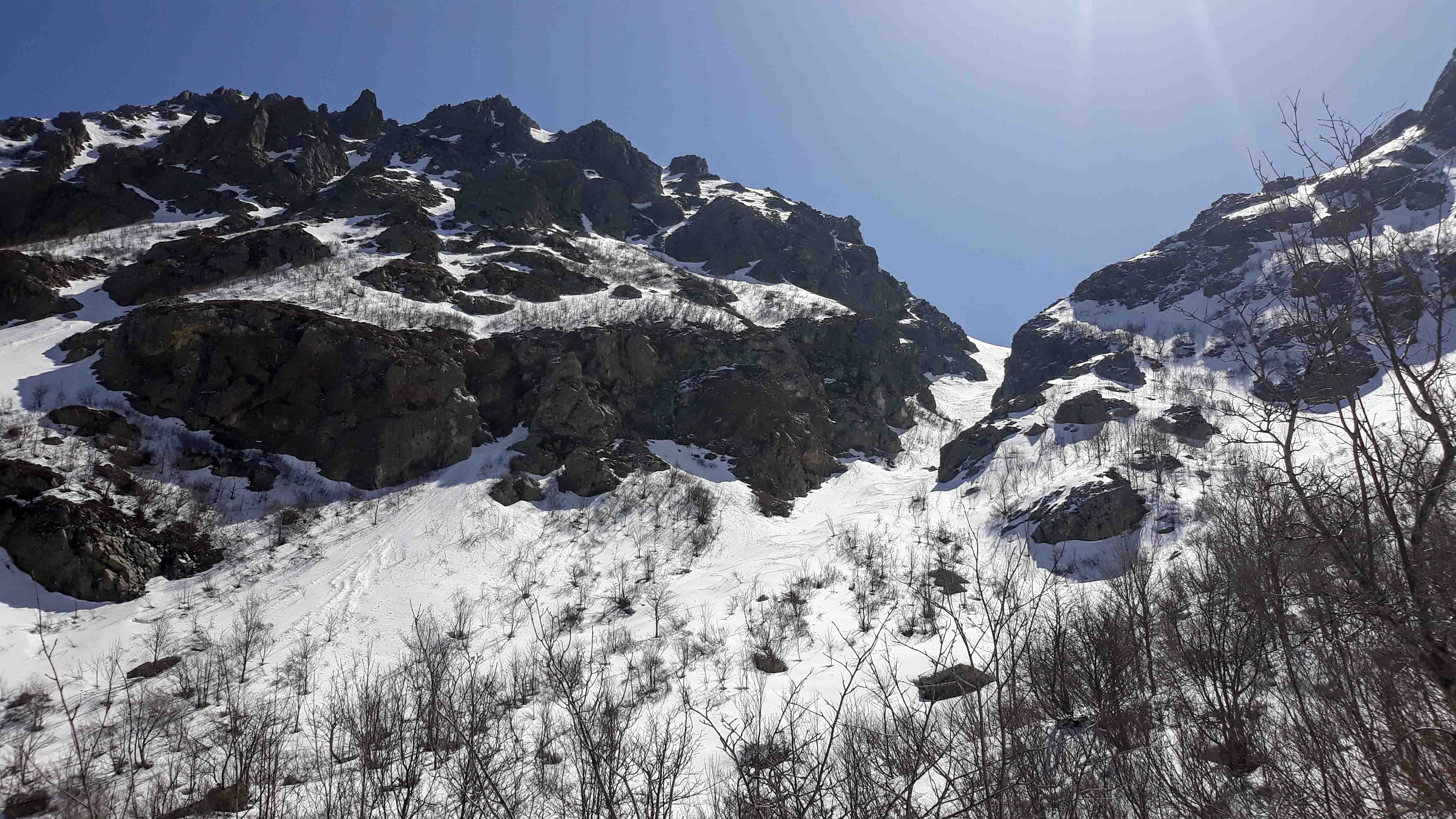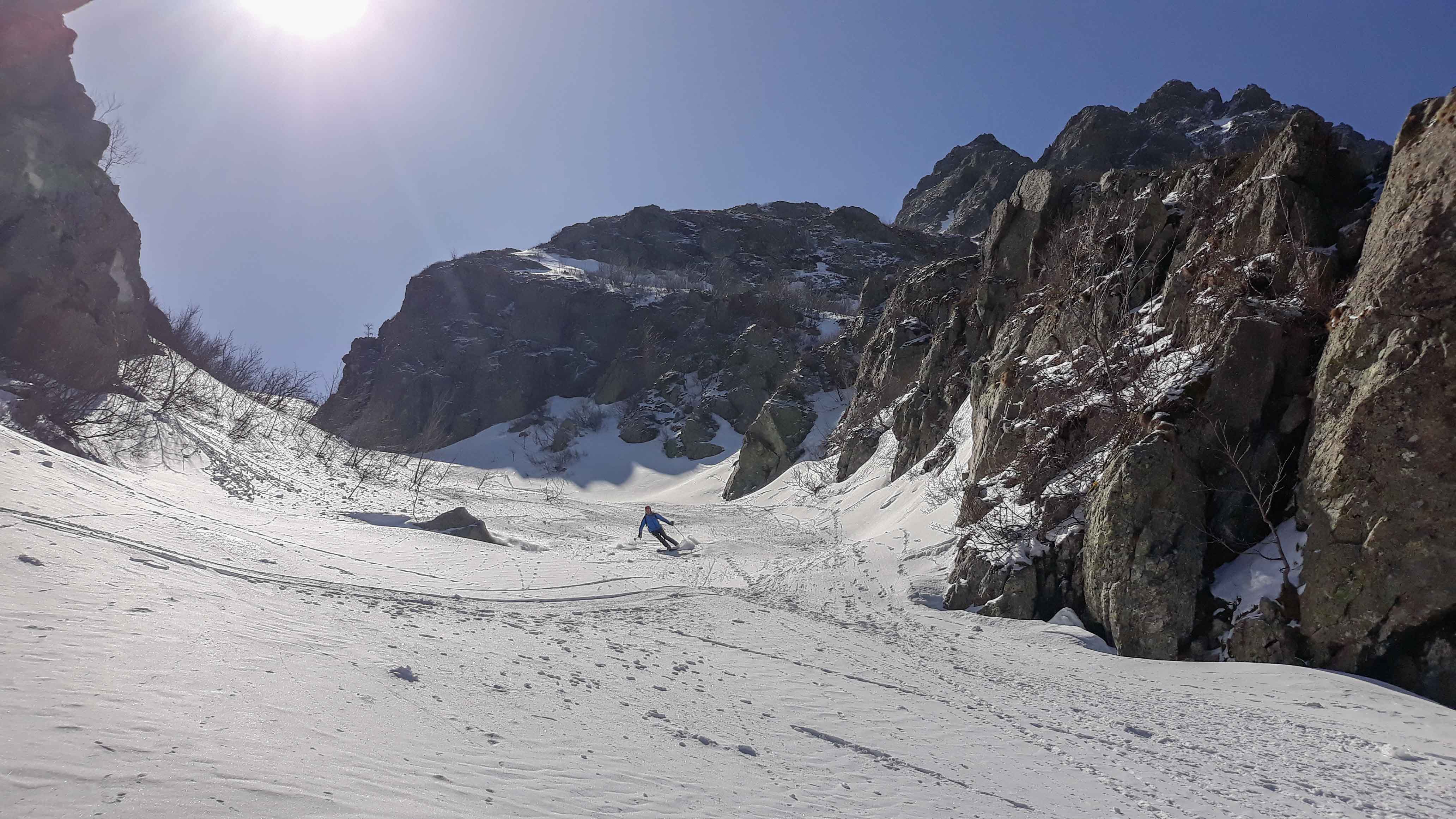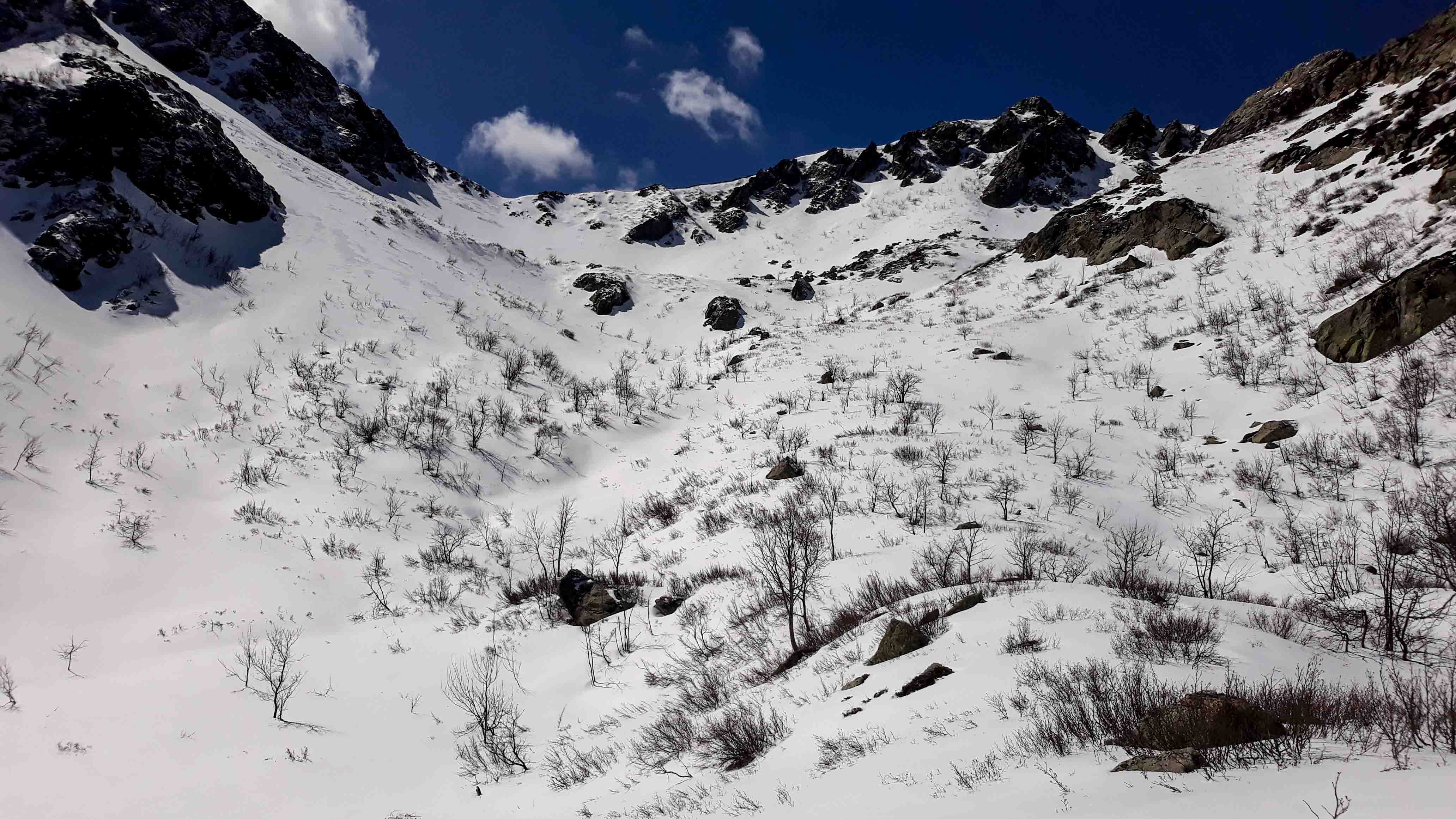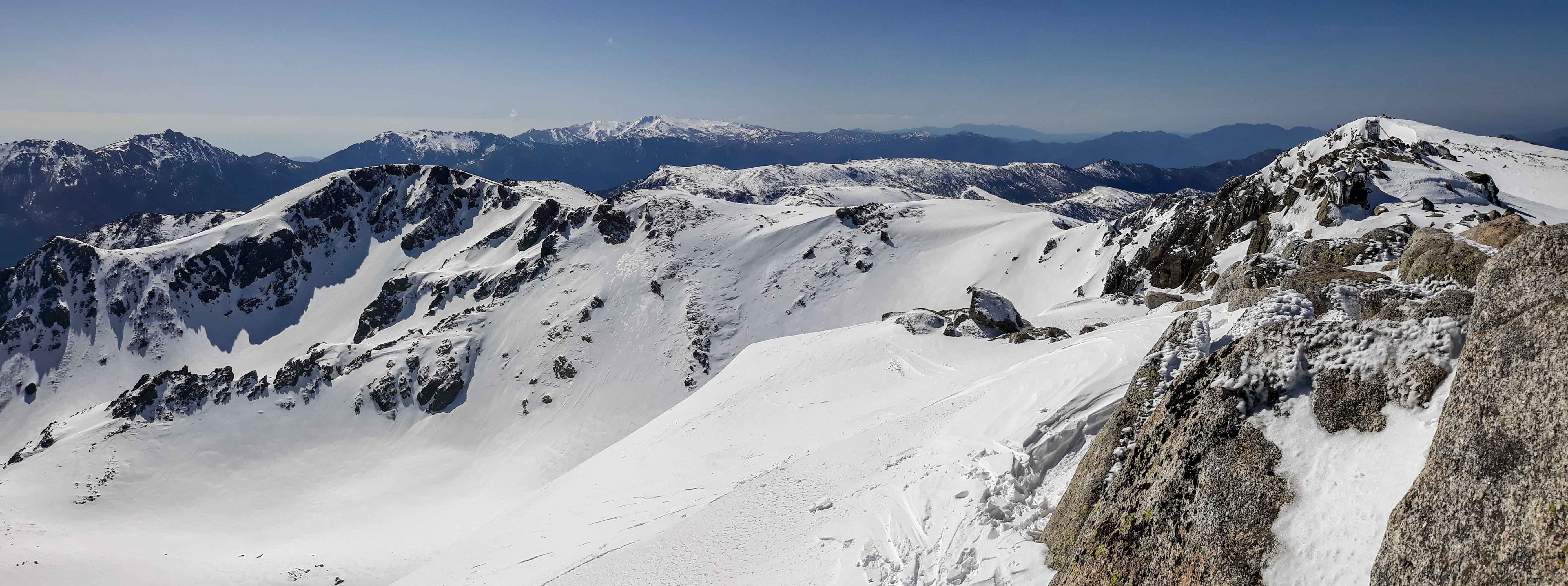 Joli petit tour où après un petit échauffement au Renoso, on est allé chercher la poudre en versant nord de la bocca della Cagnone. La remontée à la Punta alla Vetta par la bocca lagione est splendide, s'en suit une descente pas raide mais assez exposée par endroits du versant est d'alla Vetta (barre à contourner puis petite remontée pour prendre la pente du bas)