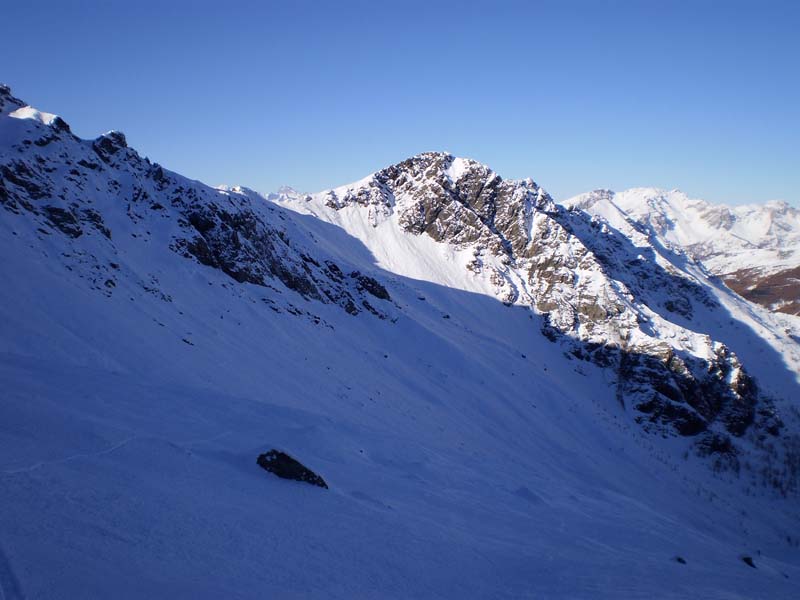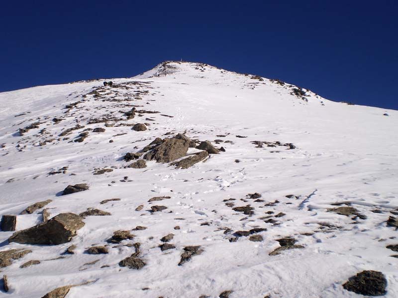 Eh oui! je suis une des nombreuses Jérôme Jingreau victimsaprès son beau compte rendu sur skitour... Et je ne regrette pas d'être venu. Mais parti le premier, j'ai dû retracer une bonne partie de la montée au-dessus de 2300, car le vent avait soufflé et durci la trace. Heureusement, 1 puis 2 puis 3 skieurs m'ont dépassé vers 2800 et ont pris le relais. Fin de la montée au col à pied, c'était plus pratique (crampons inutiles). Croupe ouest à skis jusqu'au sommet. Certains sont descendus du sommet à skis, mais ils ont raclé les cailloux. J'ai chaussé 30 m plus bas et je n'ai fait qu'1 ou 2 effleurettes... Dans la merveilleuse descente du col, j'ai imité Jérôme jusque dans une fabuleuse boîte, voulant éviter un gros glaçon et me retrouvant piégé par une des nombreuses zones cartonnées. La poudre est très froide, je peux vous le dire.
