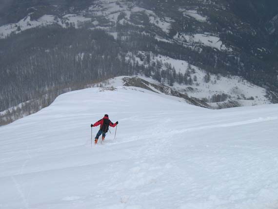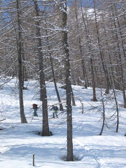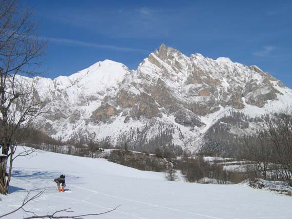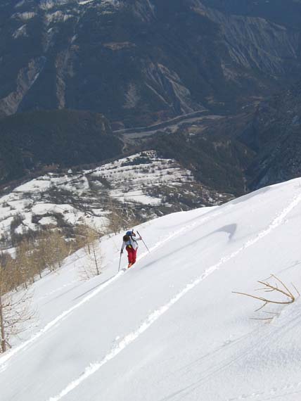 Après une journée de neige passée dans le vallon de l'estrop, ce fut une belle matinée pour cloturer ce séjour varois. Je fais rarement de la pub, mais je tiens à signaler l'excellent accueil de Bruno et Sylvie à l'auberge Roche Grande d'Entraunes : logement confortable, nourriture abondante, énergétique et gouteuse et surtout la disponibilité de nos hotes, pratiquants competents en rando.