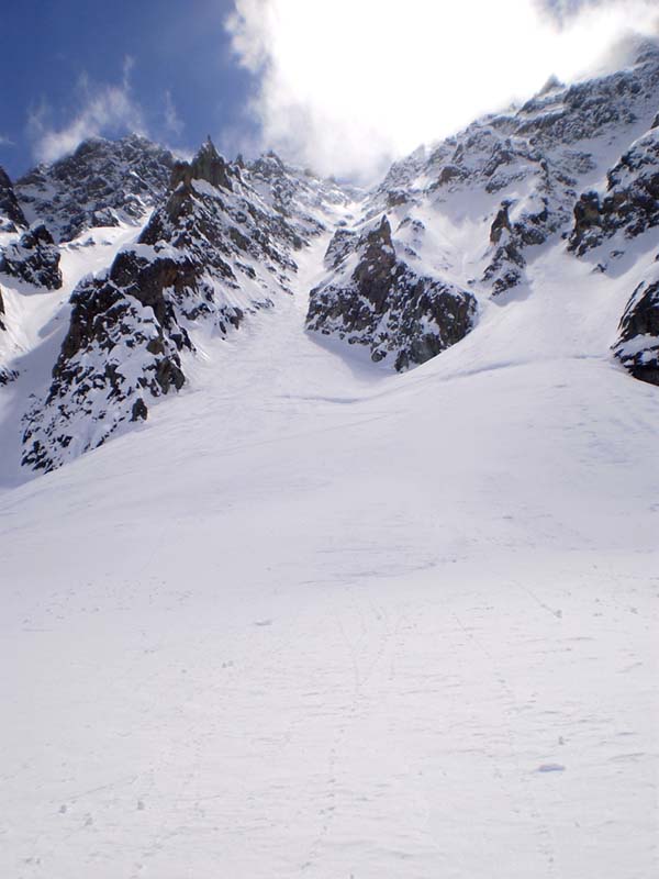 Vu un skieur et un surfeur qui descendaient la directe nord-ouest aux Agneaux (J16.1) qui avait l'air très bien, mieux que le Piaget classique à cause de rochers en sortie. S'ils veulent quelques photos, qu'ils me le disent... Vu les traces de mes prédécesseurs, qui, eux, ne s'étaient pas trompés de couloir (CR de Rafa sur skitour). La corniche tout en haut est encore en place... Croisé vers 9h 5 skieurs vers le col d'Arsine qui revenaient de la voie normale des Agneaux par le Réou d'Arsine après avoir renoncé à cause du temps. Deux skieurs descendaient de Valleyssart quand je passai à la descente. Neige évidemment très molle sous le lac de la Douche, mais ça passe assez bien jusqu'au Casset, avec 2 ou 3 courts déchaussages qui conduisent à 50 m du pont (cela ne va pas durer). En finassant un peu, on arrive à faire du bon ski entre 2800 et 2200.