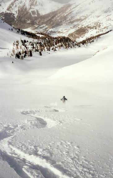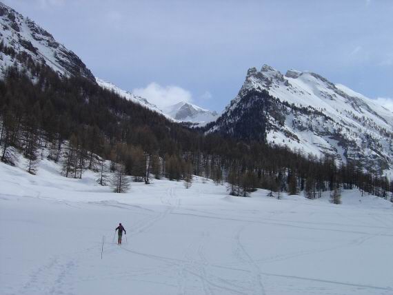 La bonne surprise pour nous qui ne connaissions pas le coin : 800 m de poudreuse avec seulement 3 traces, 3 semaines après la dernière chute de neige. Ce vallon vaut vraiment le détour, la forêt du bas est de plus très agréable à skier (pentue et peu dense, ça rappelle la nord d'Arguille!)