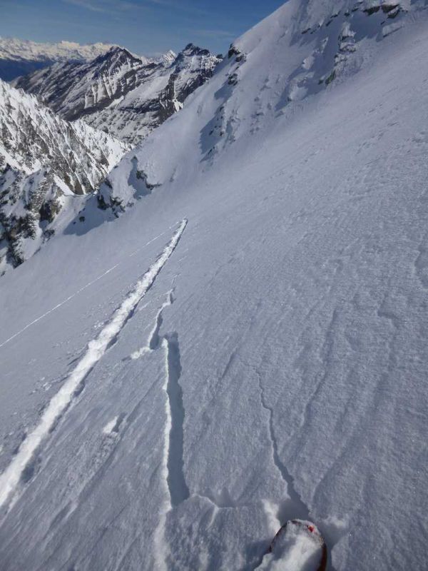 La perturbation d'hier a amené 5cm à partir de 2000m jusqu'à 20cm au-dessus de 3000m, localement plus avec le transport. Quelques plaques en formation près des crêtes dans les versants nord.