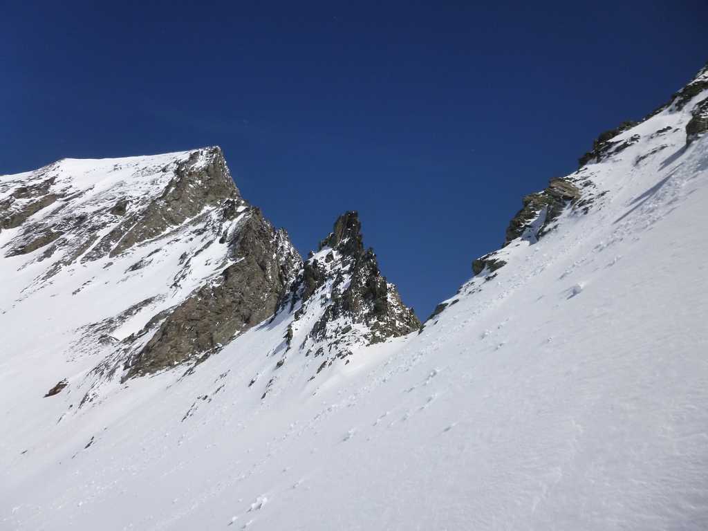 Valgrisenche > rive droite du lac de Beauregard > refuge de l'Epée par l'itinéraire au-dessus du bois des Barmettes > vallon du Bouc > pente finale (100m env. sous le sommet). Descente jusque 2600m puis remontée au col Fenêtre. Descente par l'itinéraire de montée.