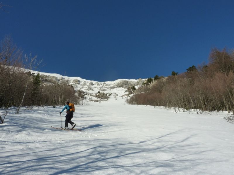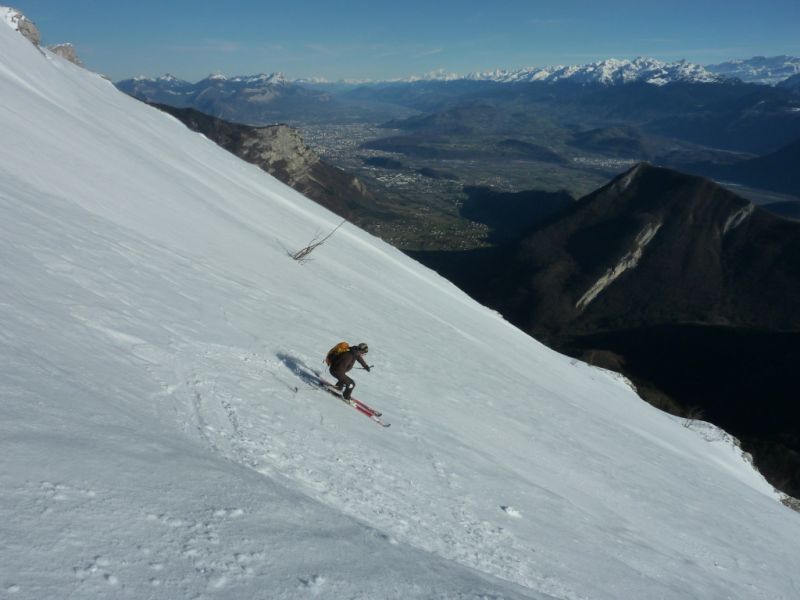 Nous sommes sortis sur la crête à un point bas entre k12 et k12.1 après avoir suivi le sentier du balcon est pendant 200 à 300m environ et avoir remonté un couloir-combe peu raide (à pied à partir de là cependant) débouchant sur les pentes supérieures.