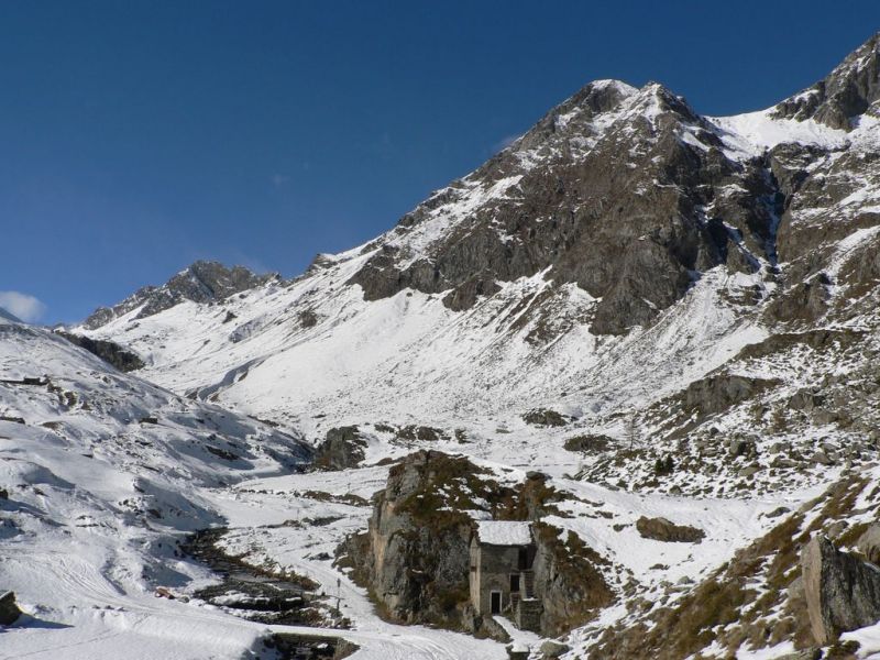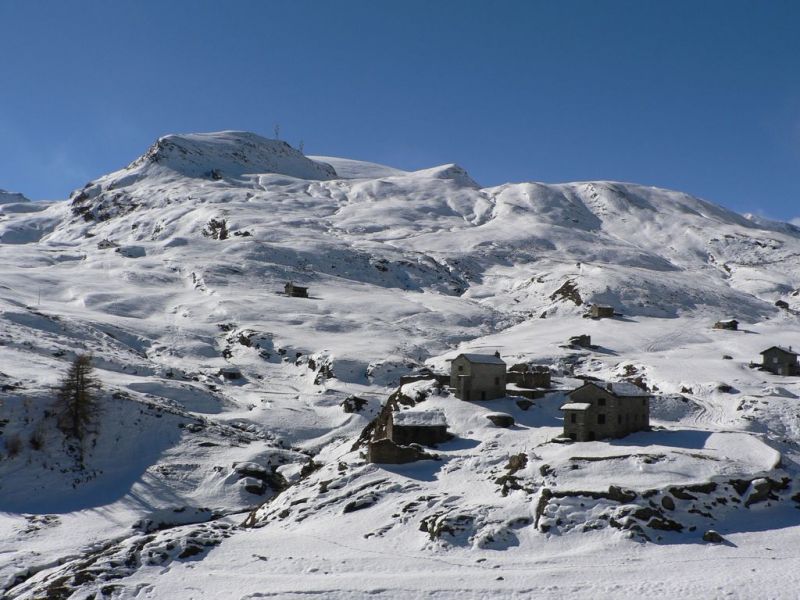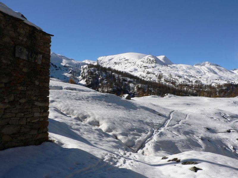 De Champorcher j'ai emprunté la route qui monte aux hameaux de Mont Blanc (grand et petit), point de départ habituel de cette course en saison. La route n'étant qu'en partie enneigée, j'ai continué en voiture jusqu'à Creton (1900m). Avec un 4x4, on peut monter jusqu'à Dondena (2100m).