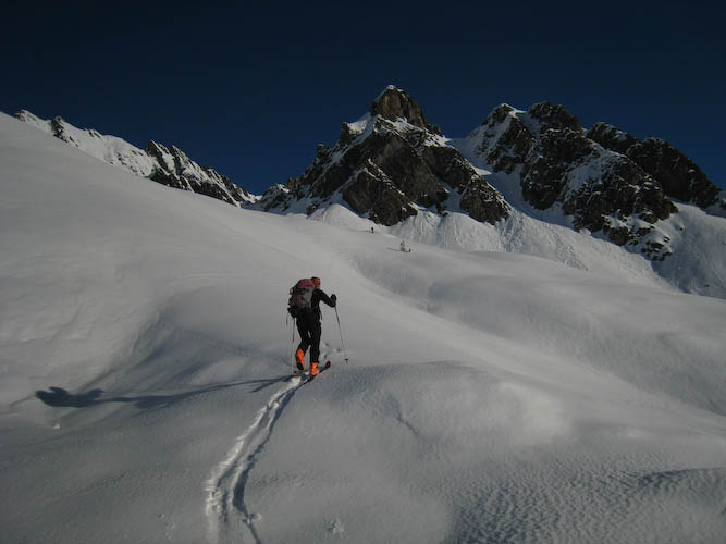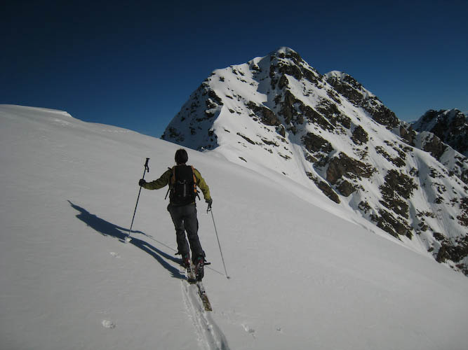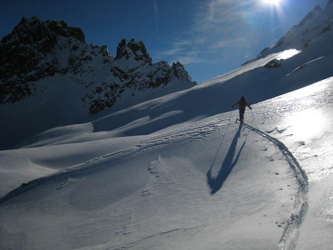 Départ La Vilette, montée par la Clapière des Crouzes et le versant sud arrivée au sommet par l'arete SO. Descente Nord jusqu'à 2400m puis traversée du col 2463m, situé à l'est du sommet. Retour par le vallon classique SE.