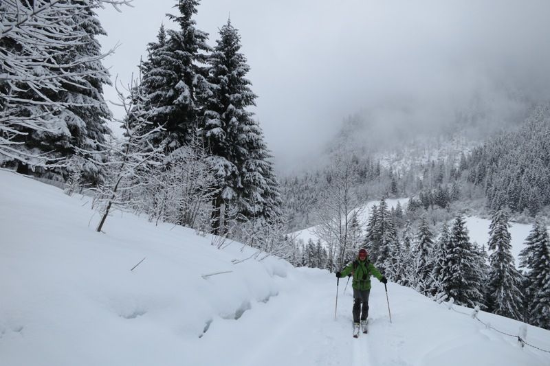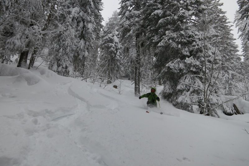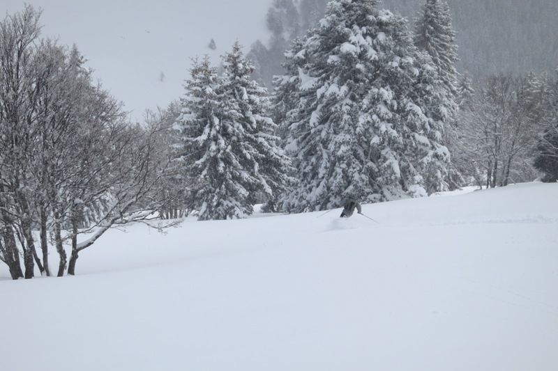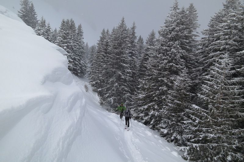 Neige lourde < 1200m, bonne puis excellente au dessus en forêt. Desifiée par le vent dans la prairie de Pravouta