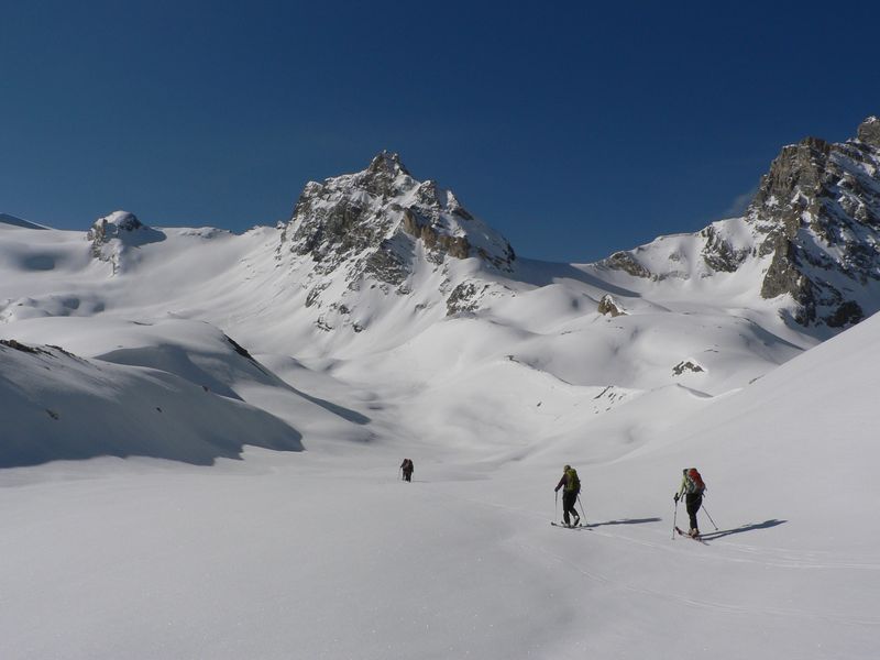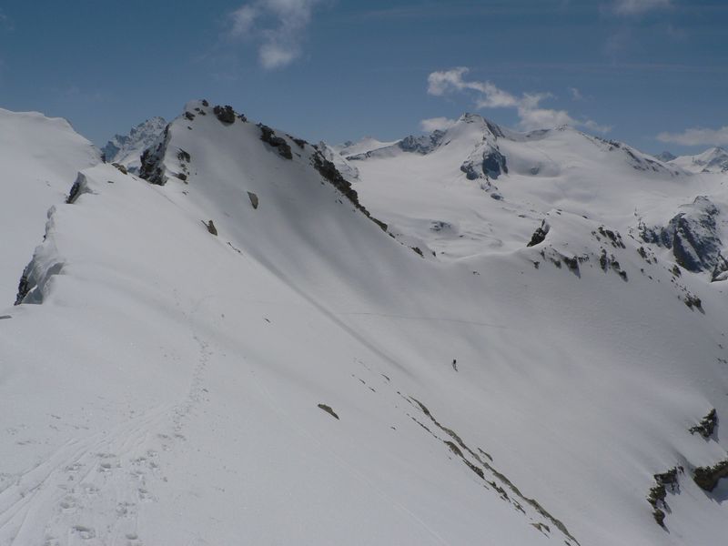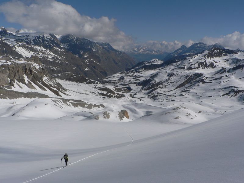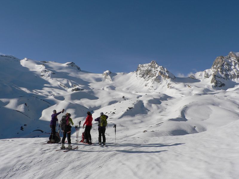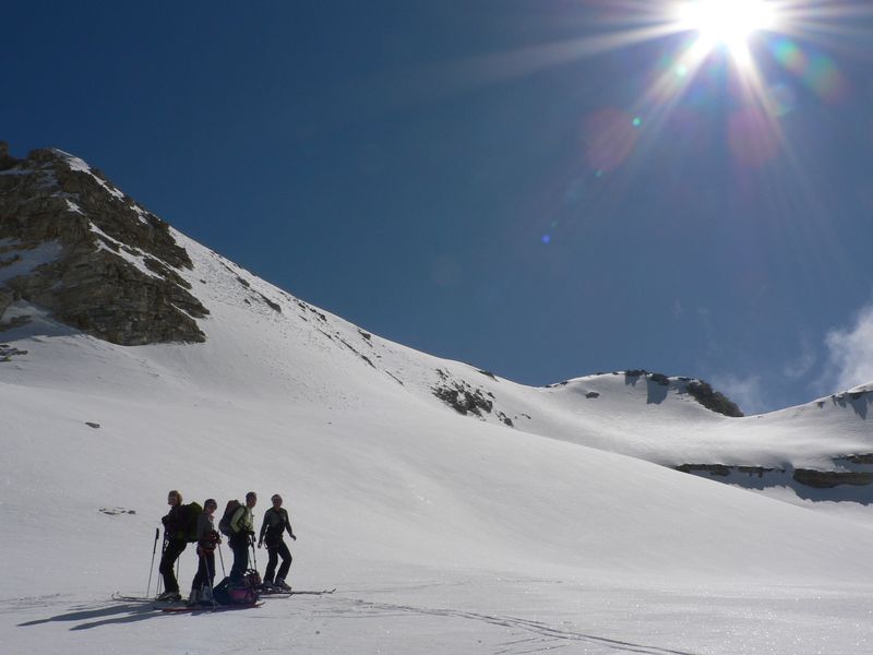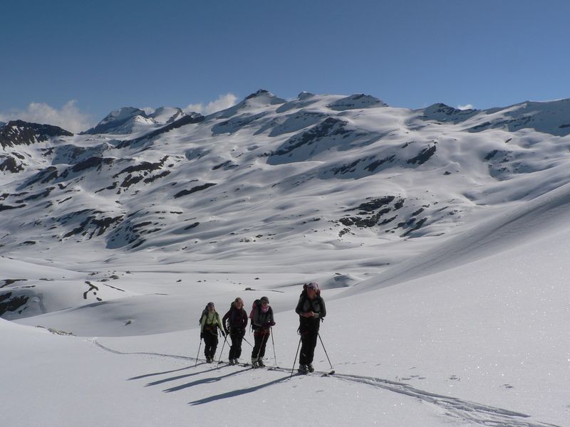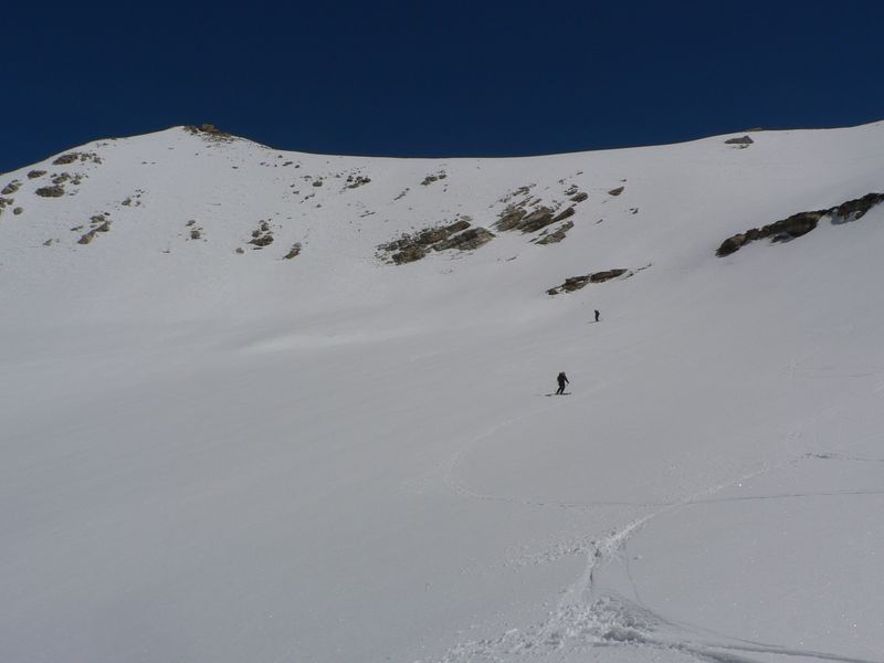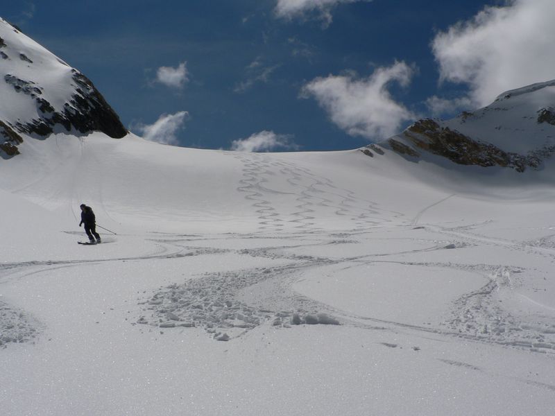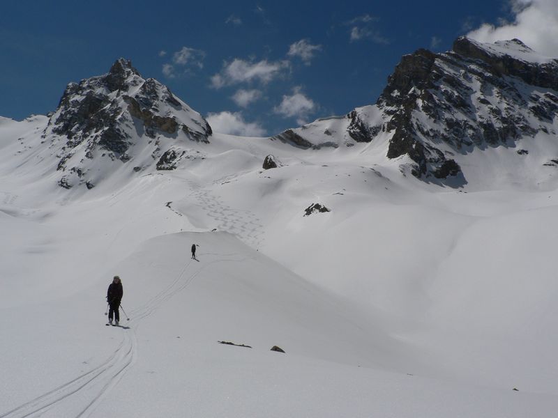 Très bon ski sur le glacier de Fond où nous étions seuls. Nous avons juste croisé deux skieurs qui faisaient le tour et le sommet du Roc de Bassagne depuis le Prariond (B8 toponeige Vanoise).