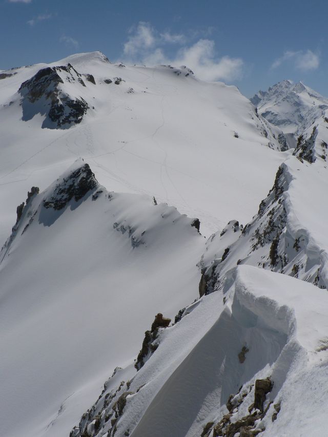 de Benevolo, glacier et col de Fond. Sommet NO par ses pentes ouest.